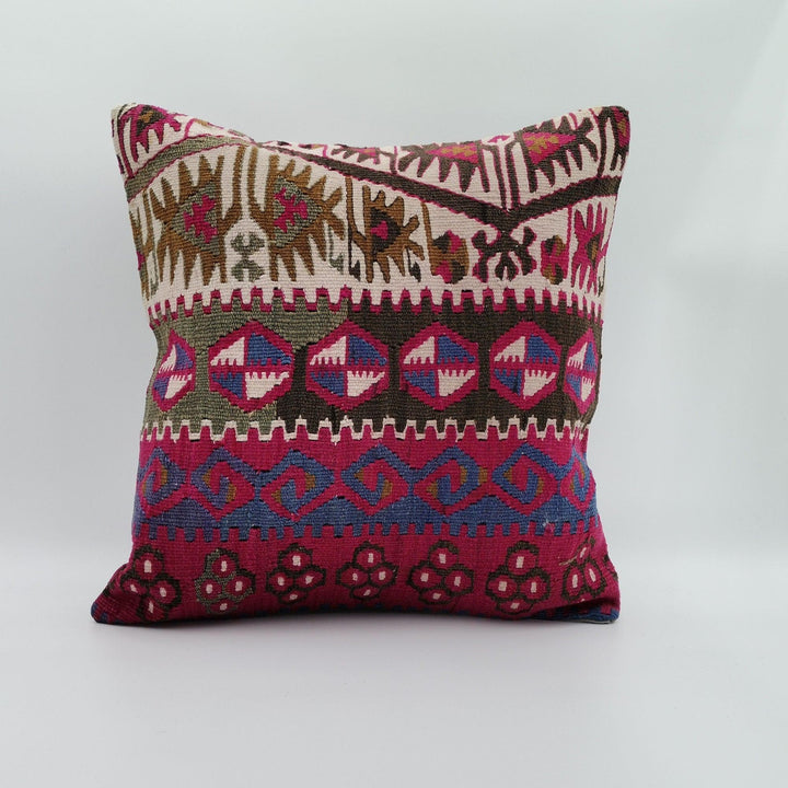 Vintage Kilim Pillow Cover|Turkish Kilim Cushion Case|Antique Ottoman Rug Throw Pillow Top|Cozy Home Decor|Handwoven Cushion Case 16x16