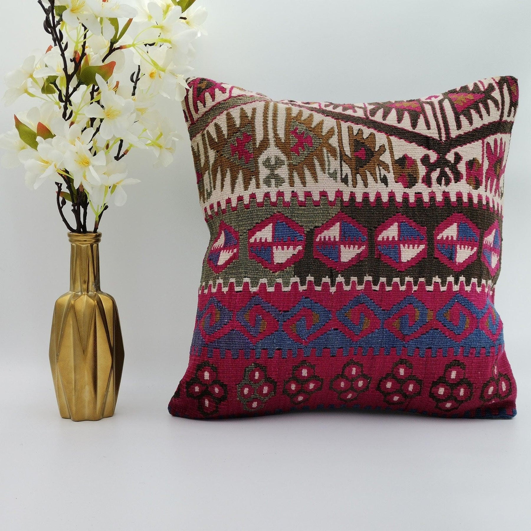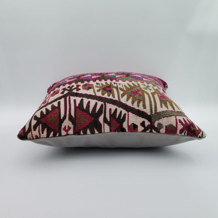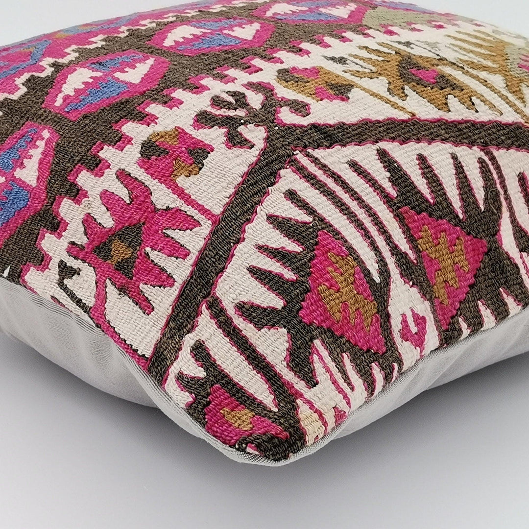 This handmade elegant square Turkish kilim throw pillow cover;