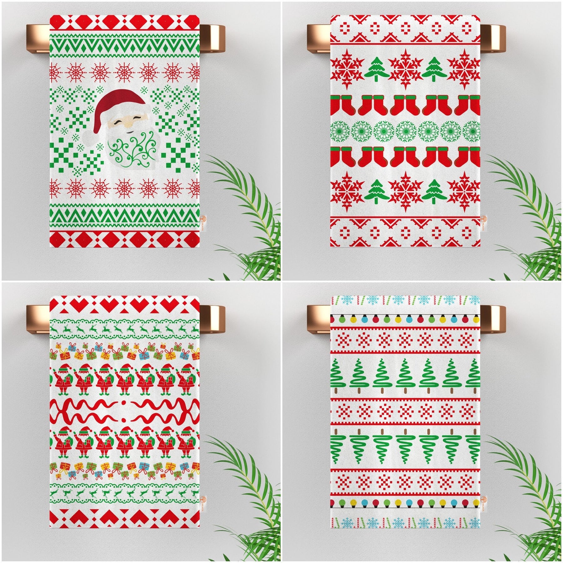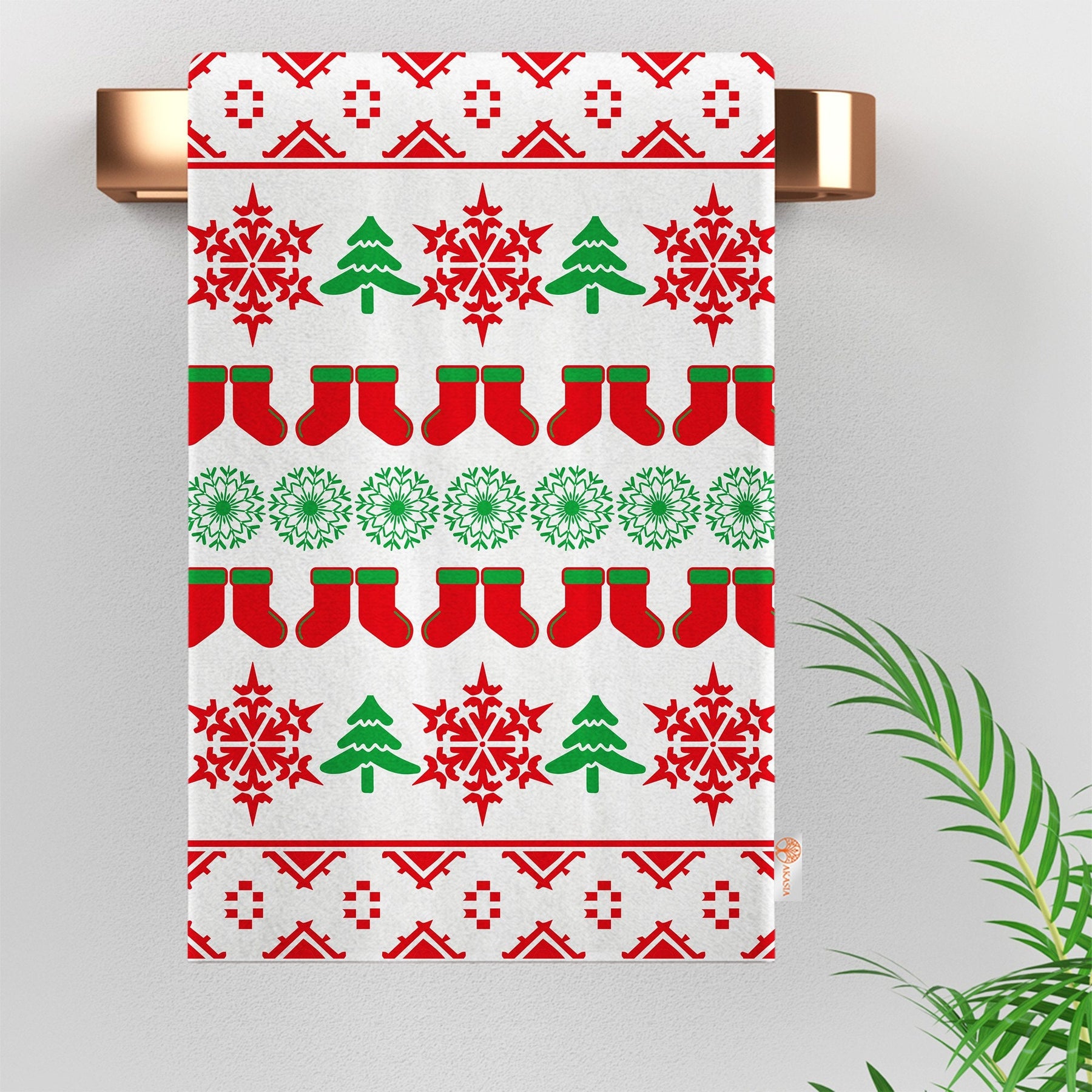 These elegant decorative rectangle kitchen/dish/hand/tea towels with Santa Claus, snowflake, pine tree, xmas socks prints;