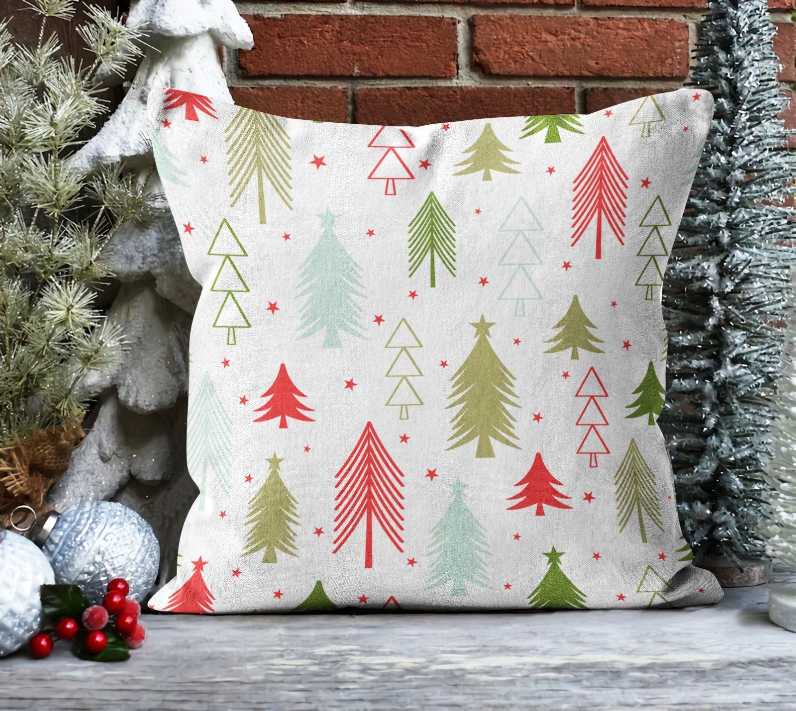Christmas Pillow Covers|Xmas Tree Cushion Case|Decorative Winter Pillow Case|Pine Tree Throw Pillow|Outdoor Pillow Cover|Xmas Themed Pillow