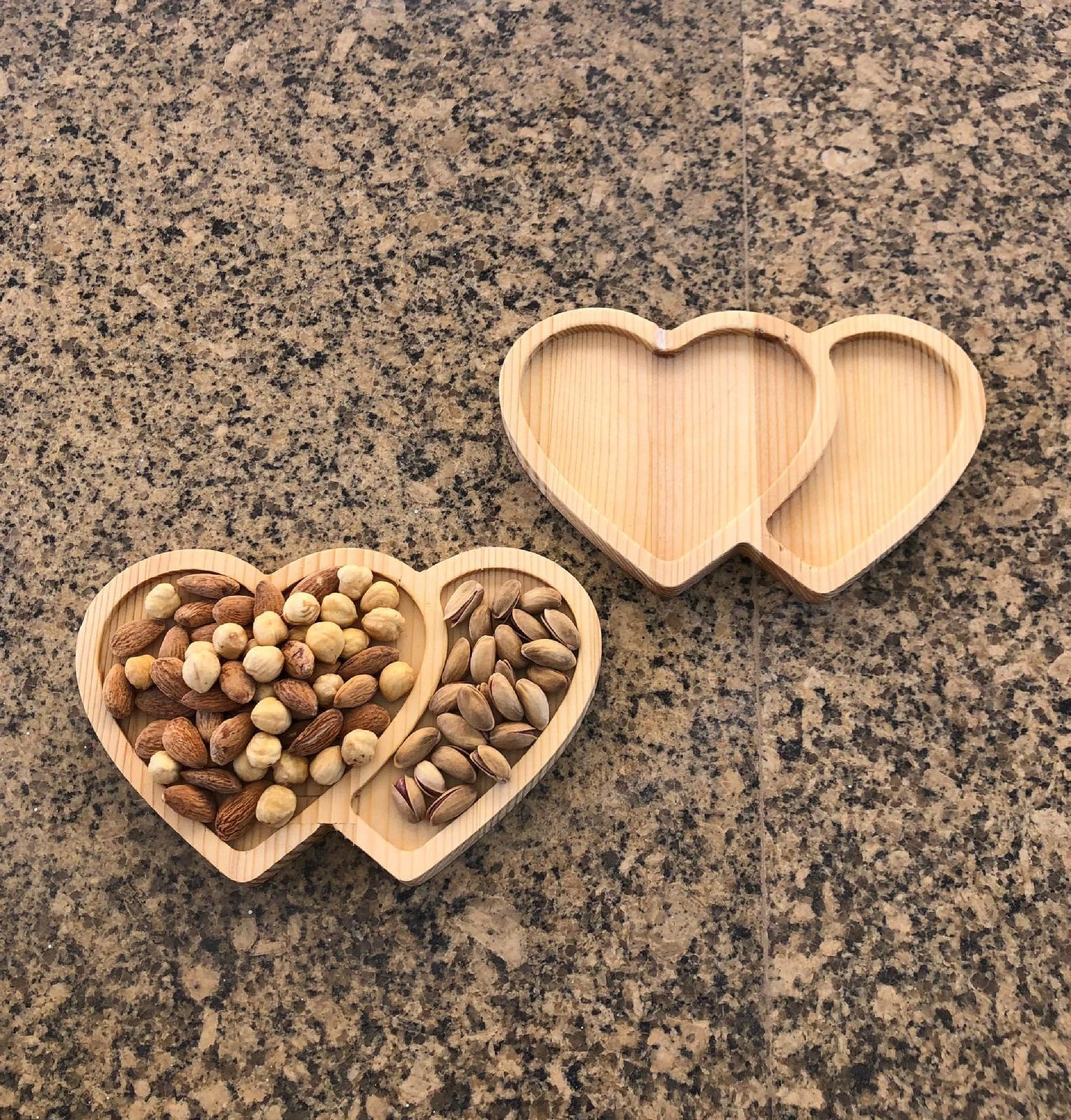Imagine this charming decorative "Wooden Heart Shaped Snack Plate'' on your table to welcome your family and friends.