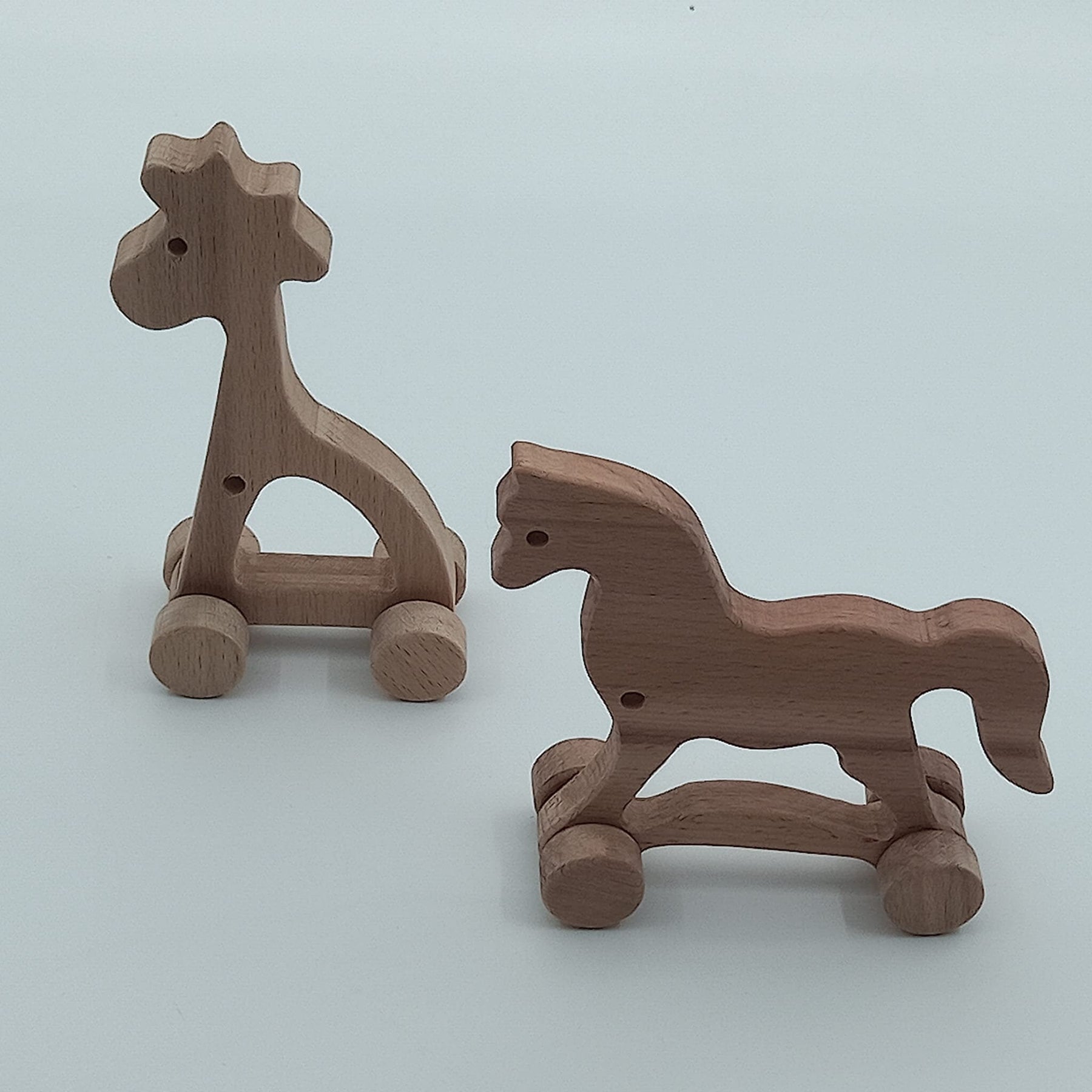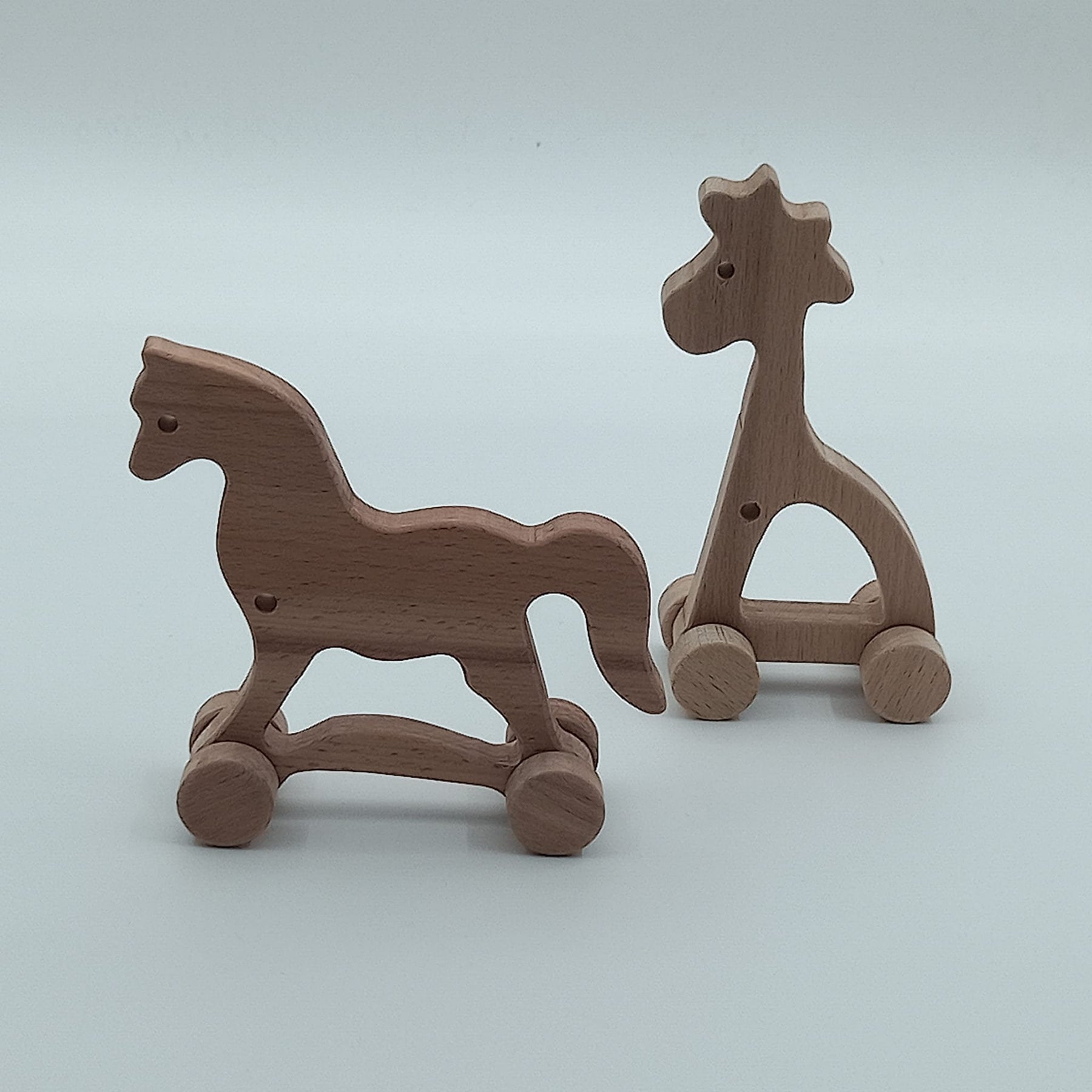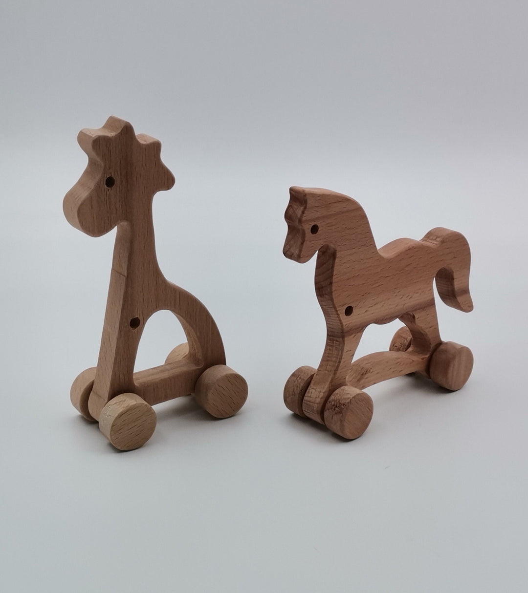 Imagine this handmade and natural, made of 100% beech wood "Set of 2 Wooden Animal Push Toys" in your kids' room to see your kids' happiness while playing with horse and giraffe ! Perfect natural and eco-friendly toy for toddlers and kids.
