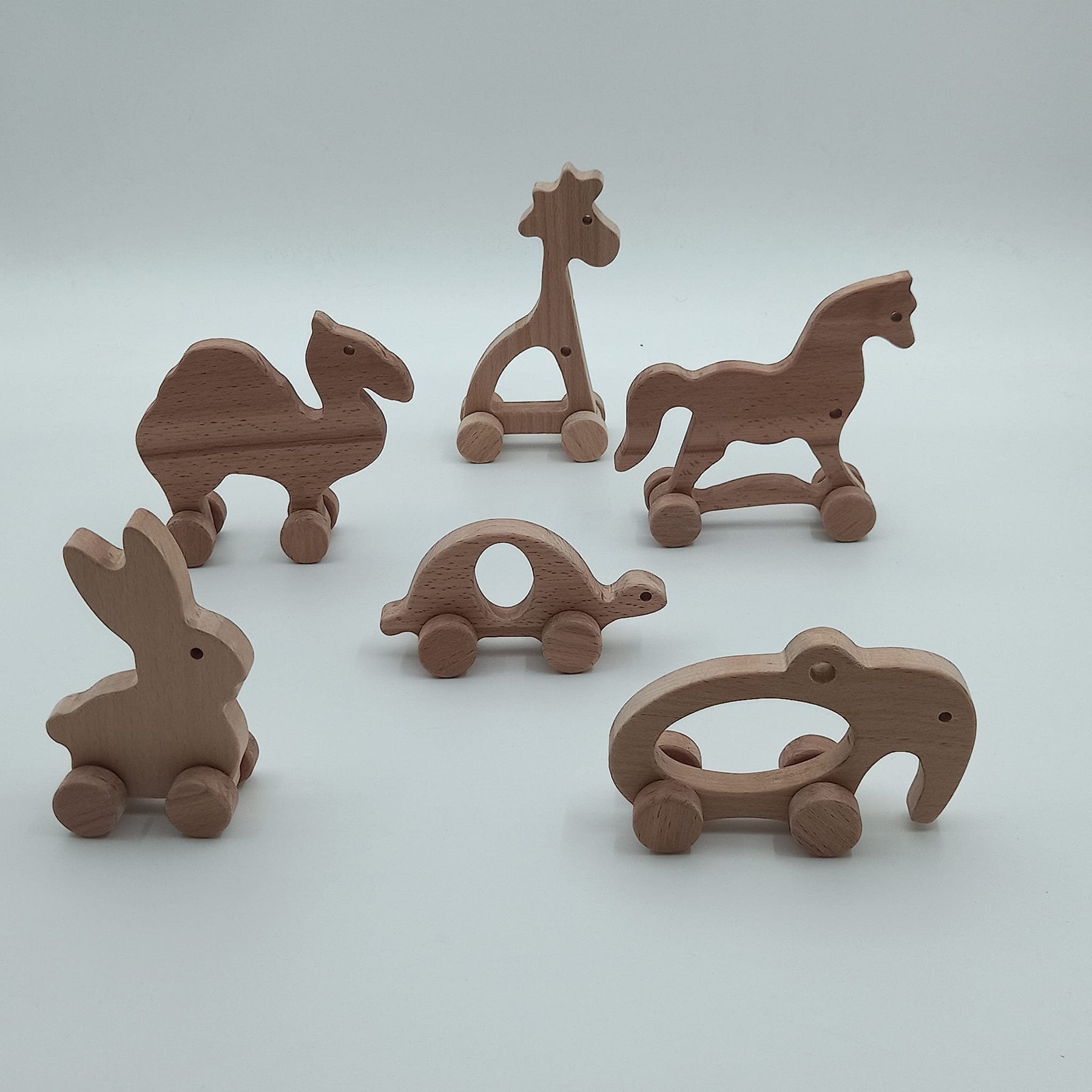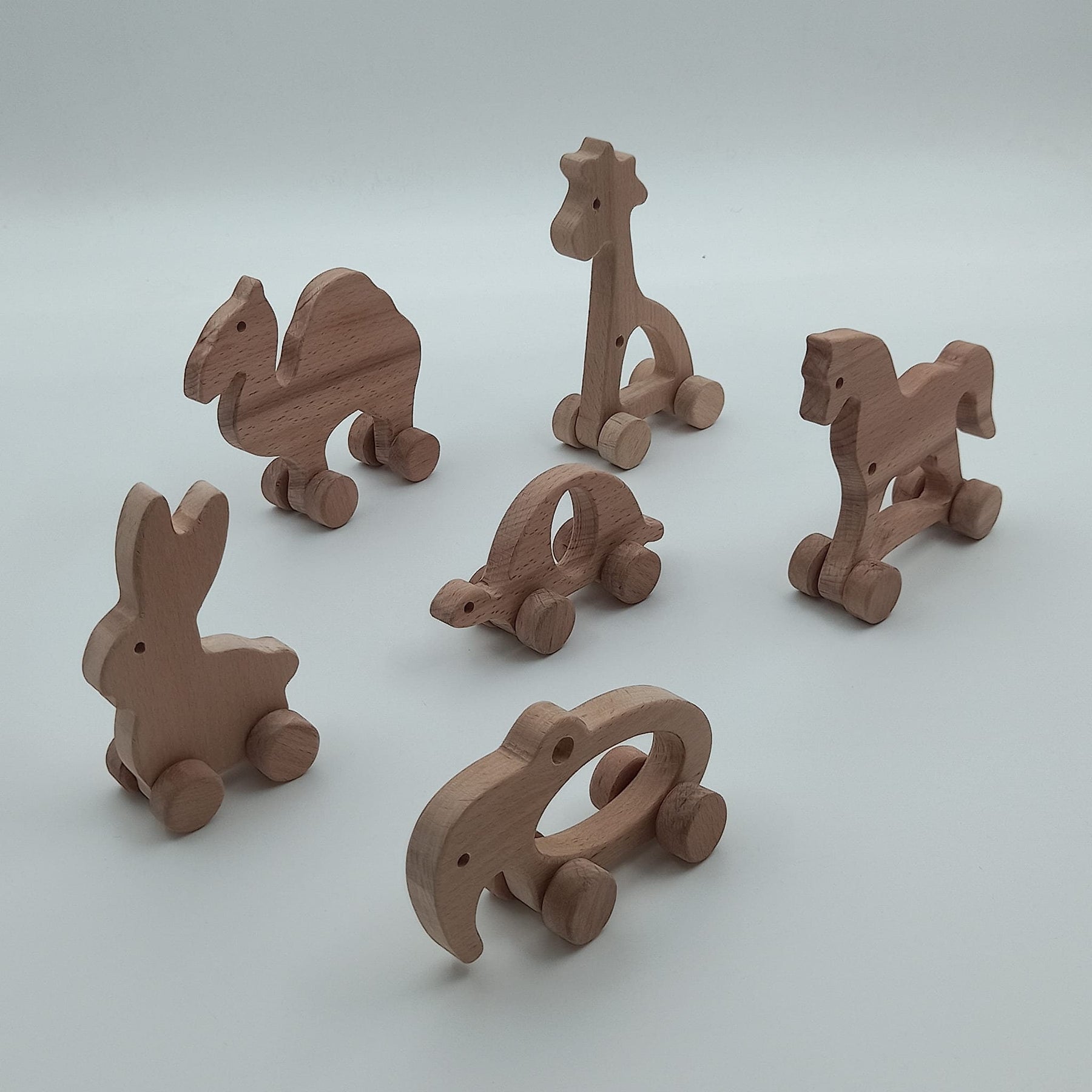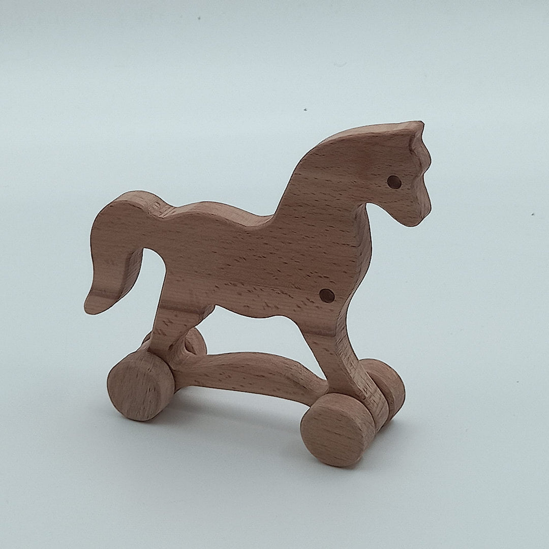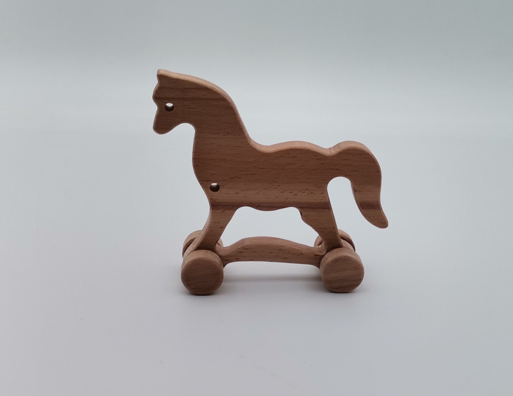 Imagine this handmade and natural, made of 100% beech wood "Set of 2 Wooden Animal Push Toys" in your kids' room to see your kids' happiness while playing with horse and giraffe ! Perfect natural and eco-friendly toy for toddlers and kids.