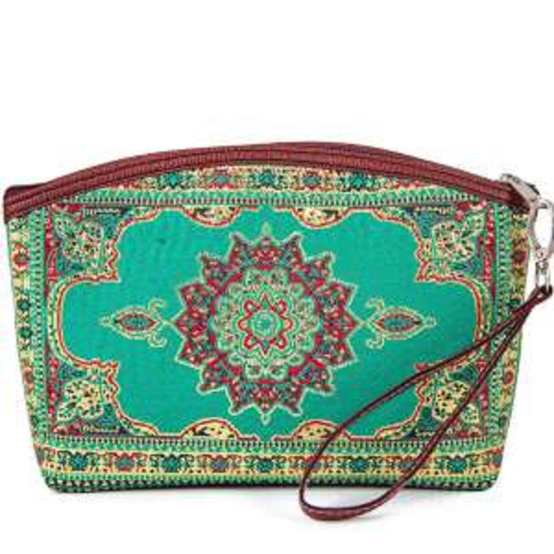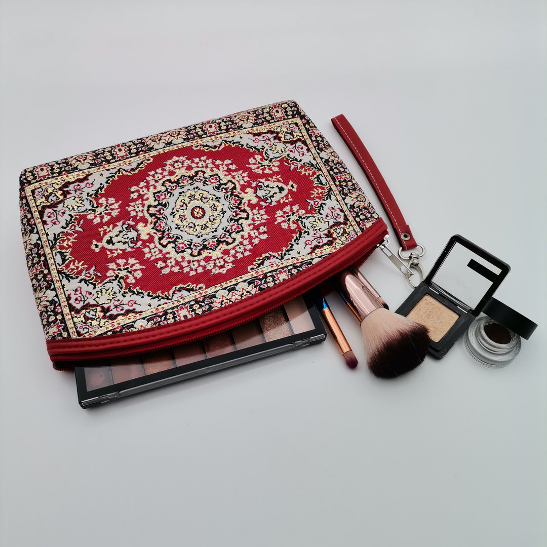 Imagine this rug designed and handmade cosmetic bag with zipper in your hand or bag as a makeup pouch, purse organizer, travel toiletry bag, jewelry or anything you want to keep together in one place or a small storage bag.