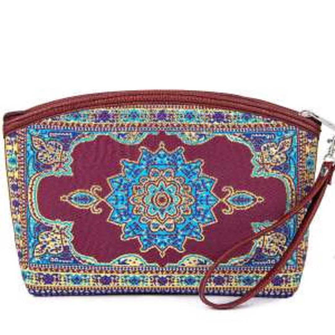 Imagine this rug designed and handmade cosmetic bag with zipper in your hand or bag as a makeup pouch, purse organizer, travel toiletry bag, jewelry or anything you want to keep together in one place or a small storage bag.