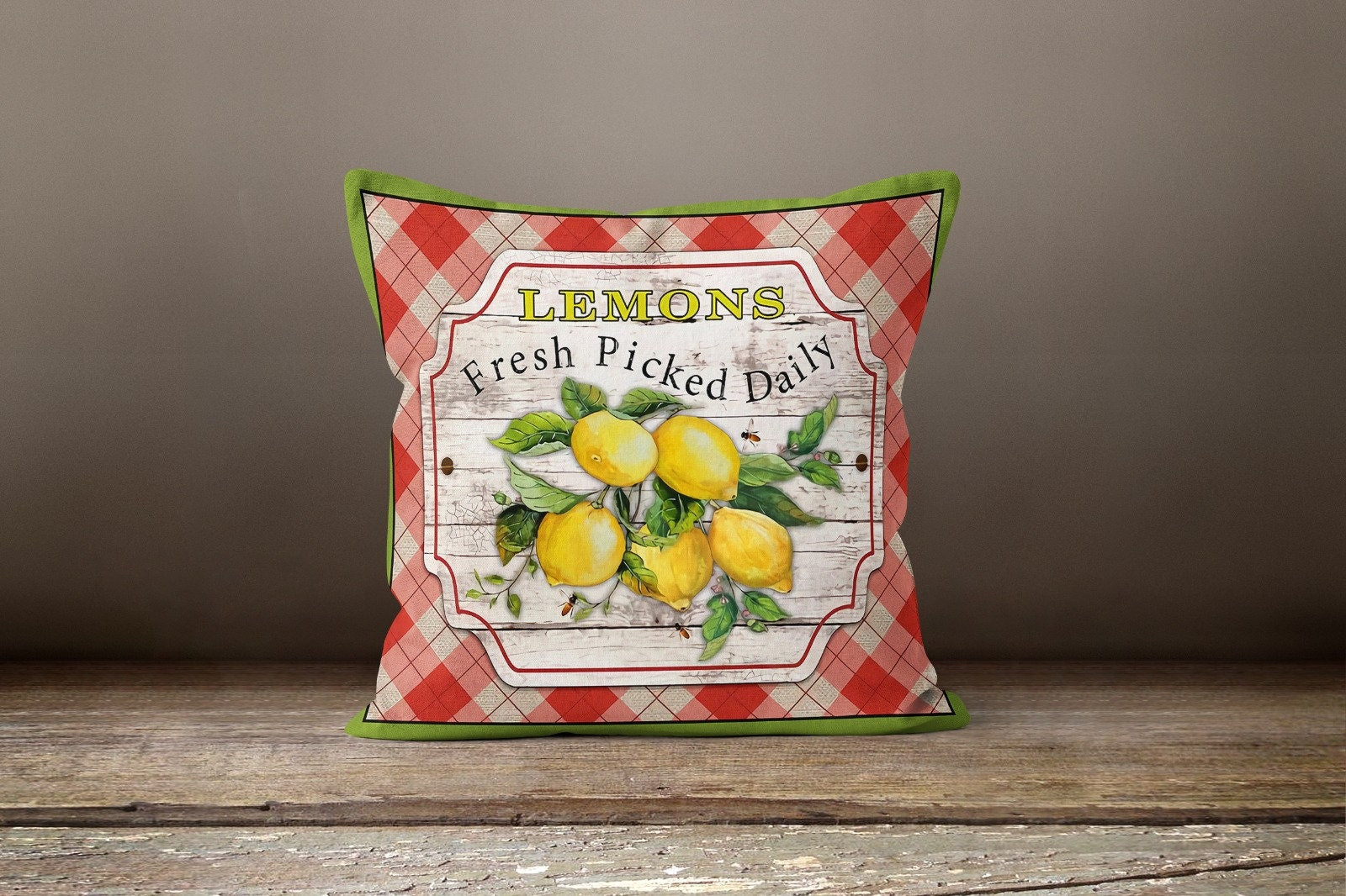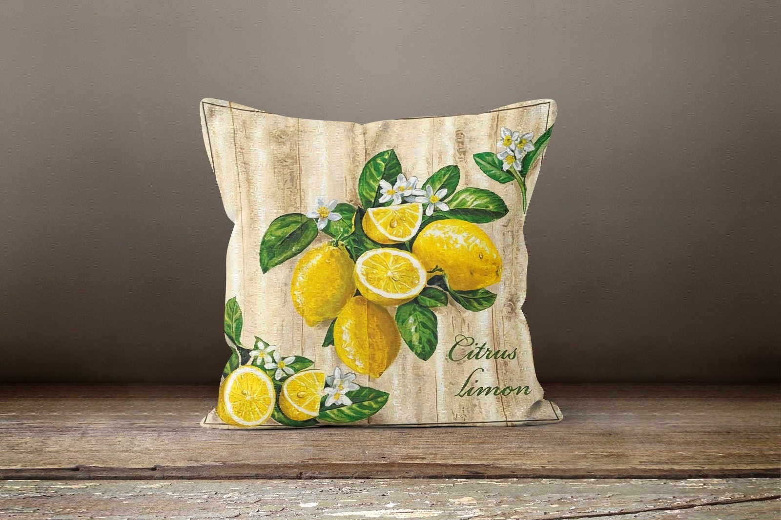 These square decorative farmhouse throw/lumbar pillow covers with lemons;