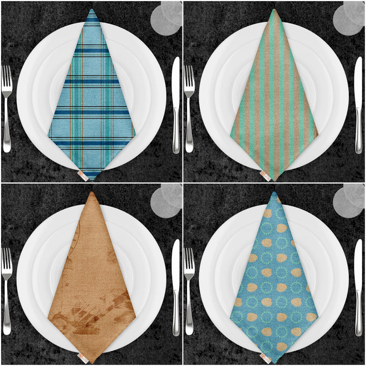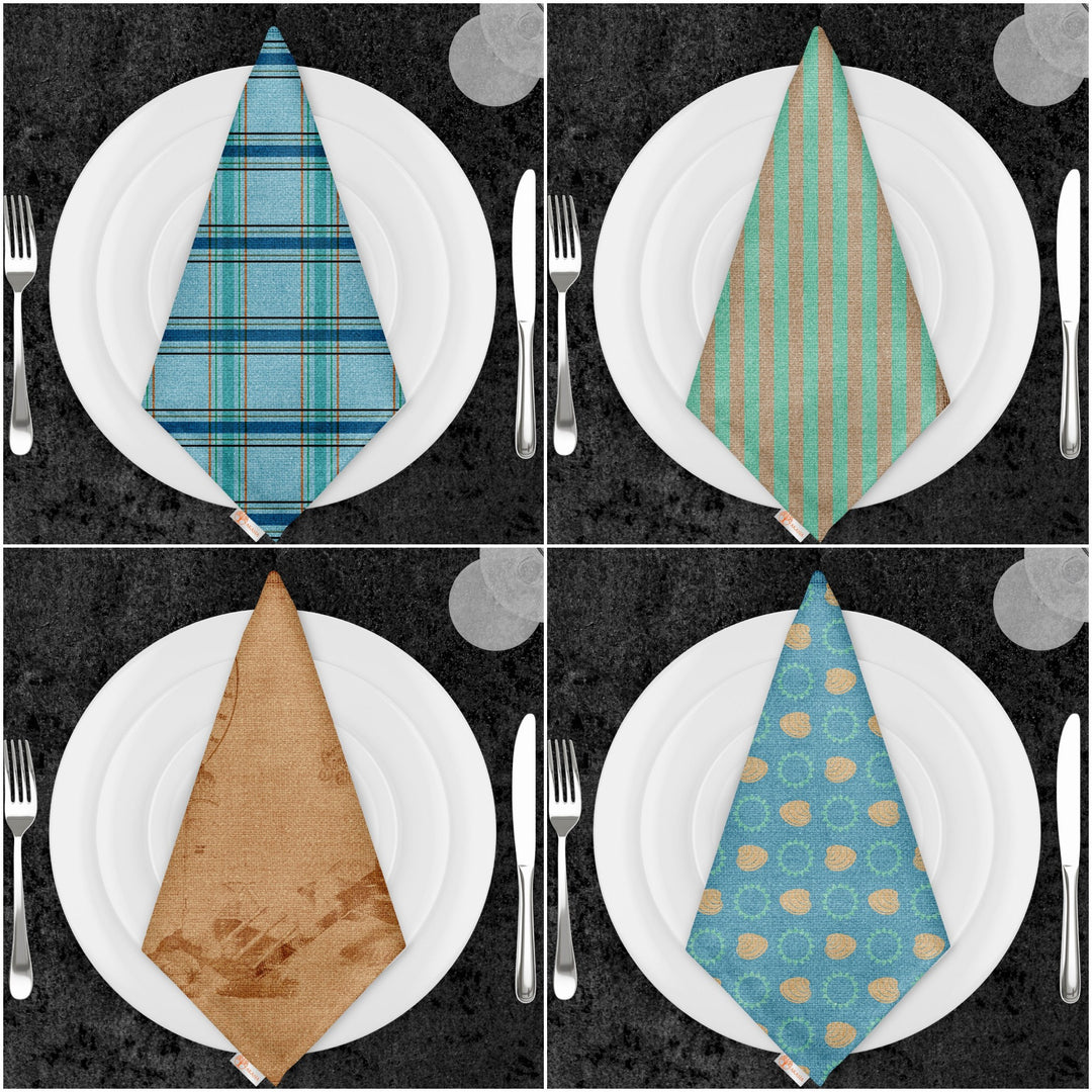 These high quality napkins with abstract/plaid/striped patterns and bird print;