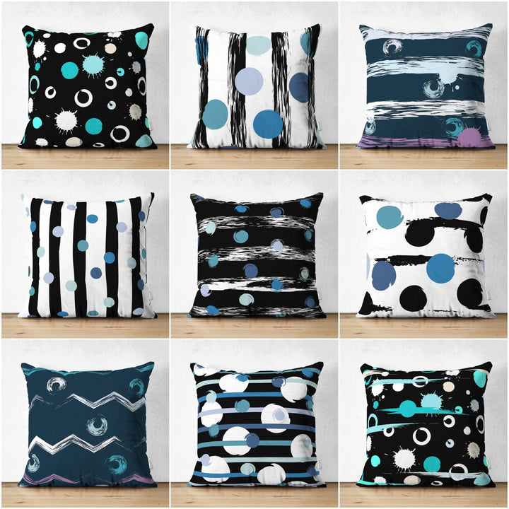 Abstract Turquoise Black White Pillow Cover