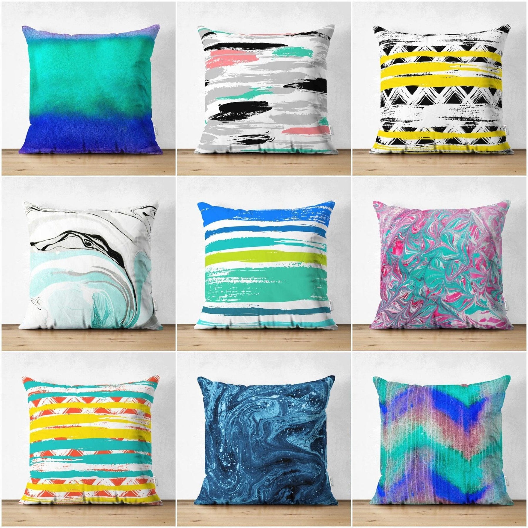Abstract Pillow Cover|Modern Design Suede Pillow Case|Vivid Colors Home Decor|Decorative Pillow Case|Farmhouse Style Authentic Pillow Case