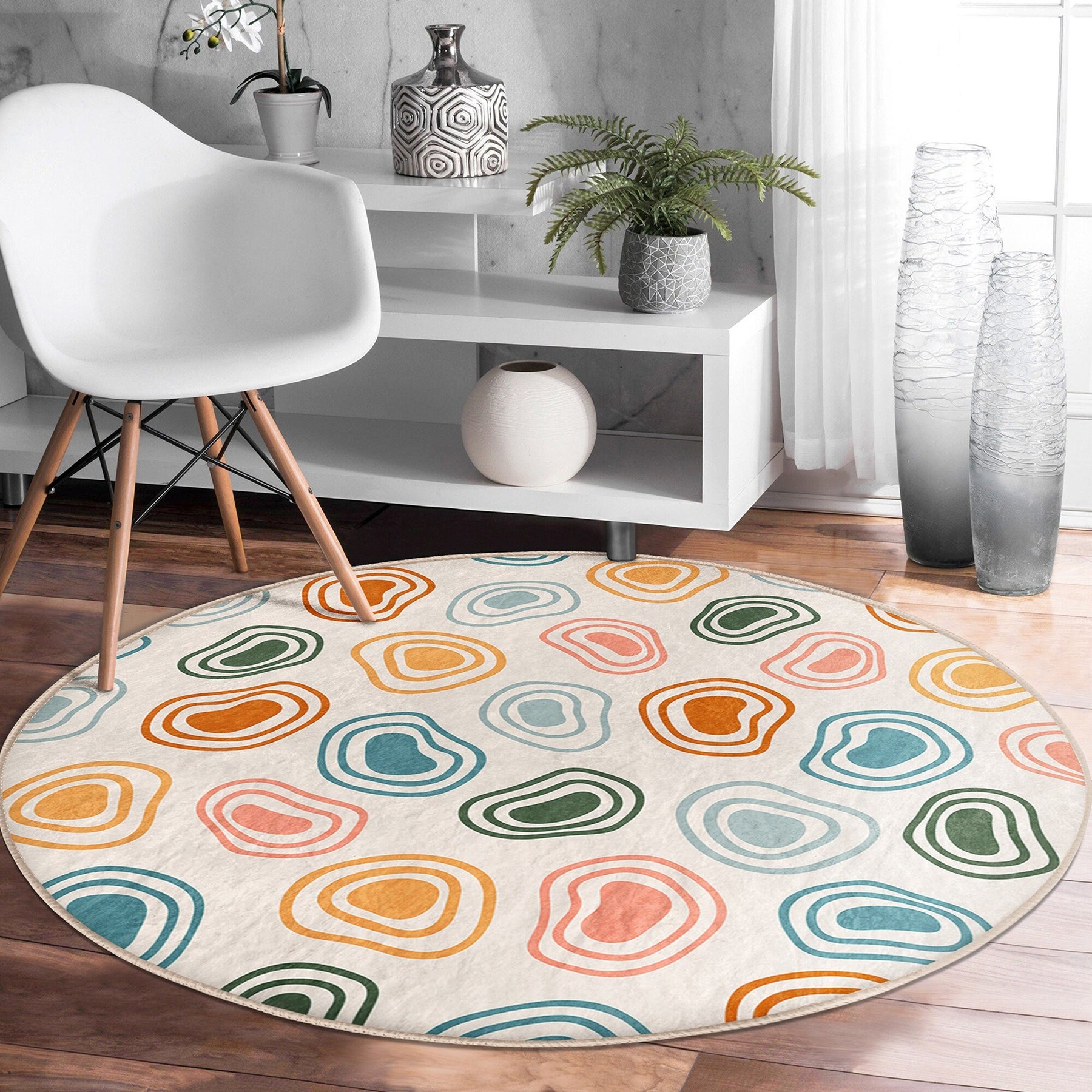 Abstract Shapes Round Rug|Non-Slip Round Carpet|Geometric Circle Carpet|Abstract Area Rug|Modern Home Decor|Decorative Multi-Purpose Mat