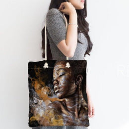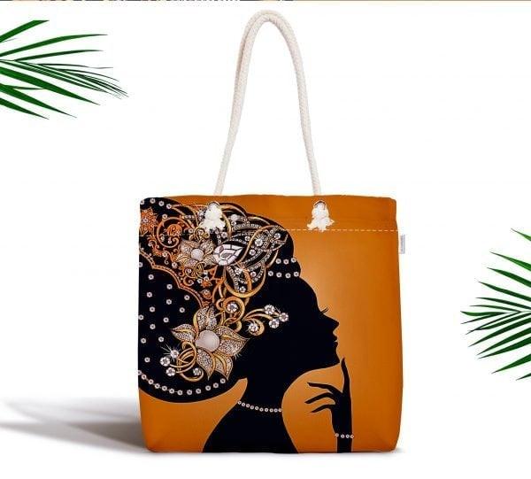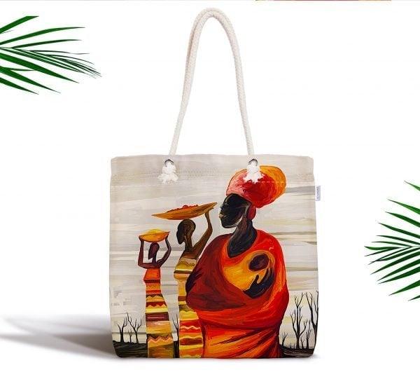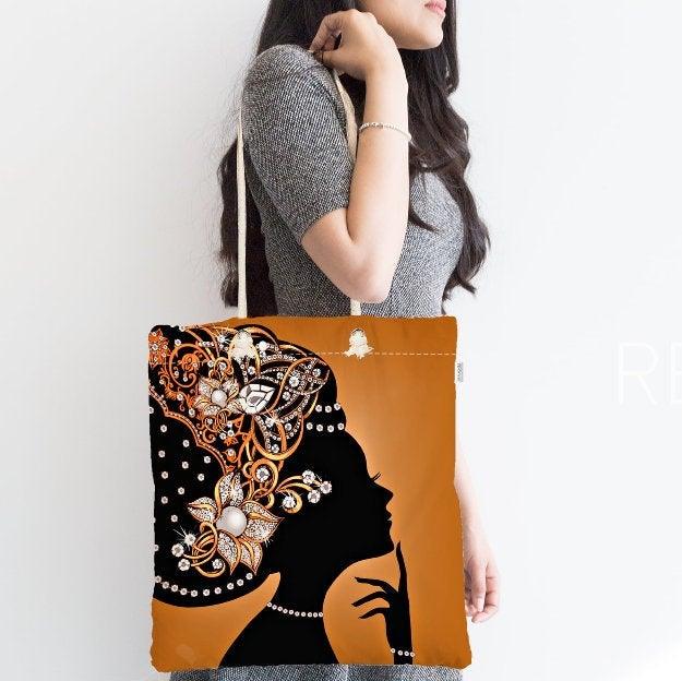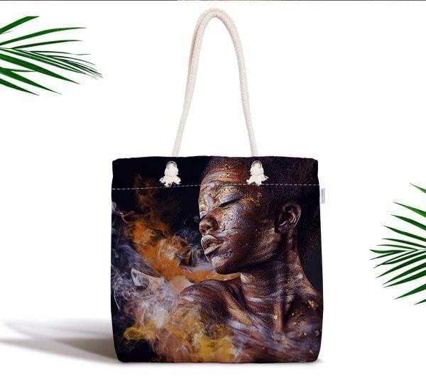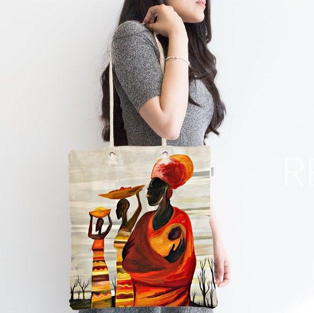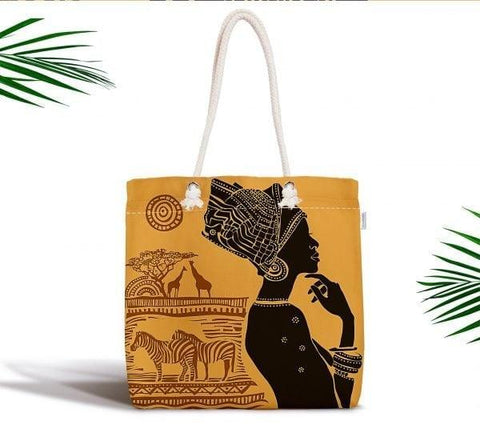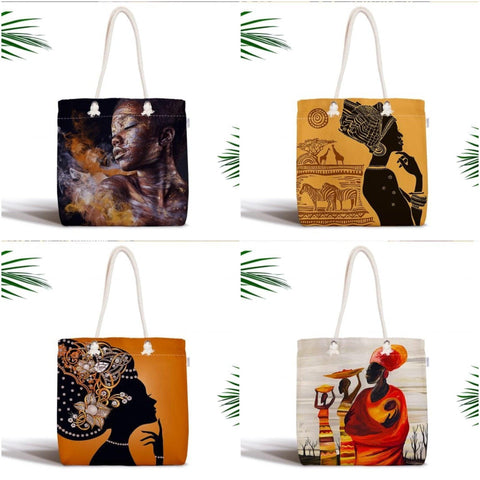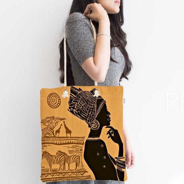 African Girl Fabric Bag|Fabric Shoulder Bag|Bohemian African Girl Beach Tote Bag|Digital Print Shopping Tote Bag for Women|Picnic Bag