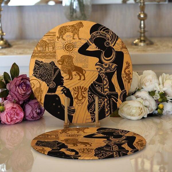 African Girl Placemat & Table Runner|Ethnic Table Top|Set of 2 African Supla Table Mat|Round American Service Dining Underplate and Coasters