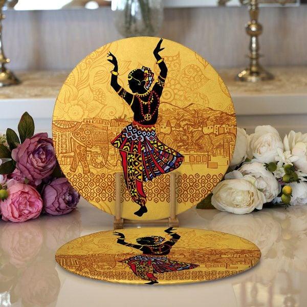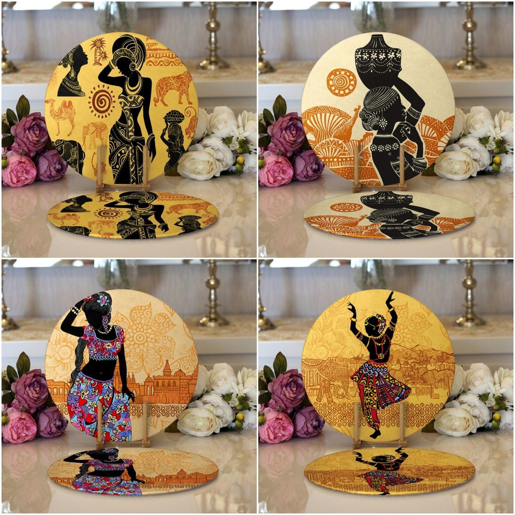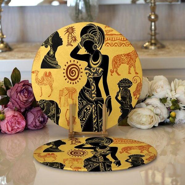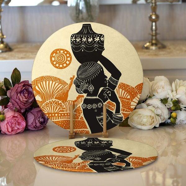 African Girl Placemat|Set of 2 Ethnic Supla Table Mat|Black Girl Round American Service Dining Underplate|Farmhouse Black-Brown Coasters