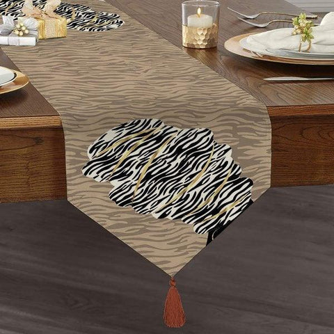This high quality, decorative tasseled chenille triangle runner with Traditional African design;