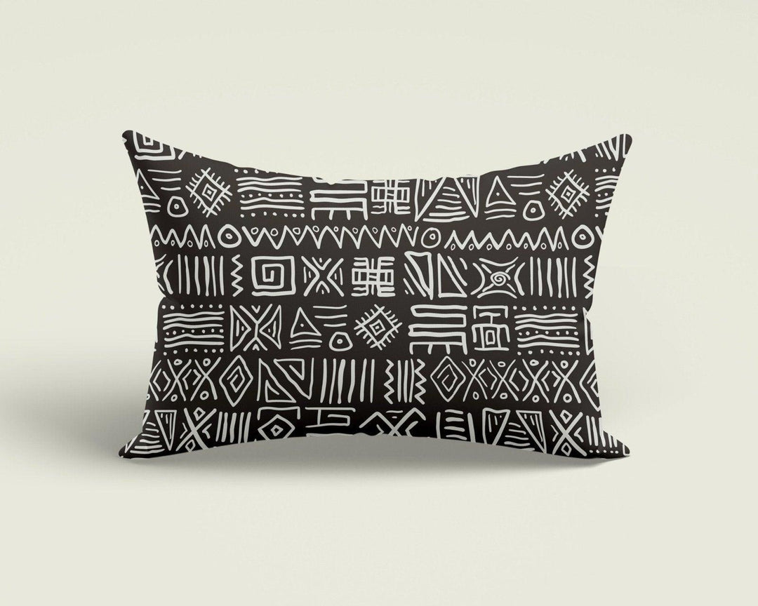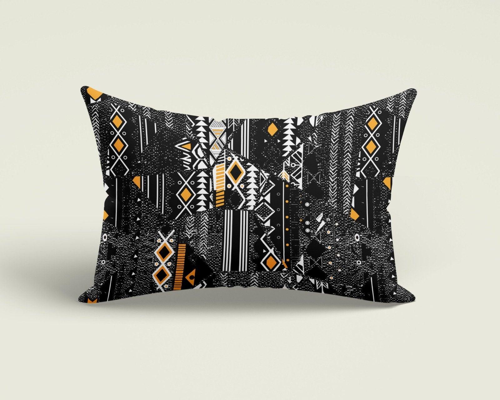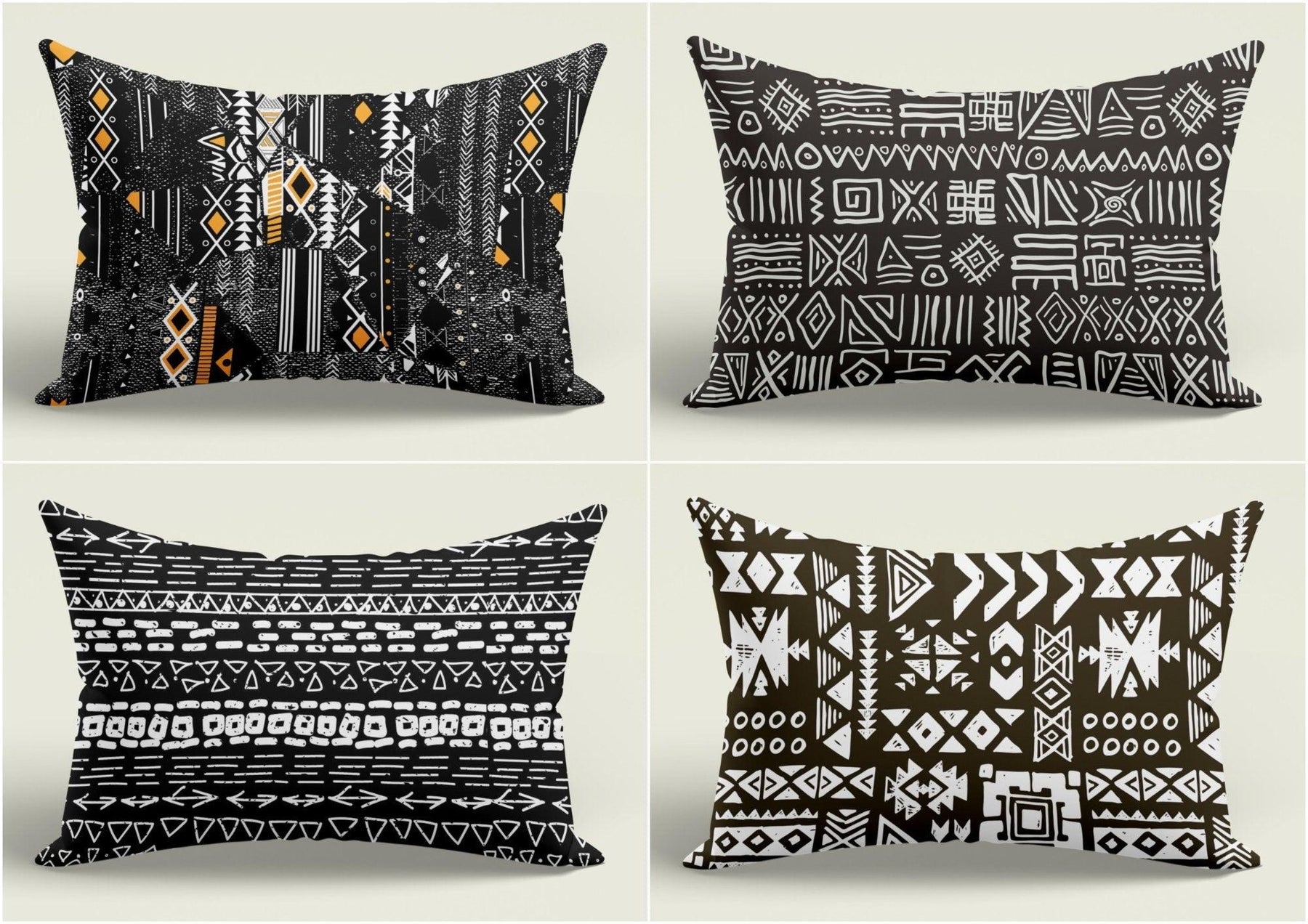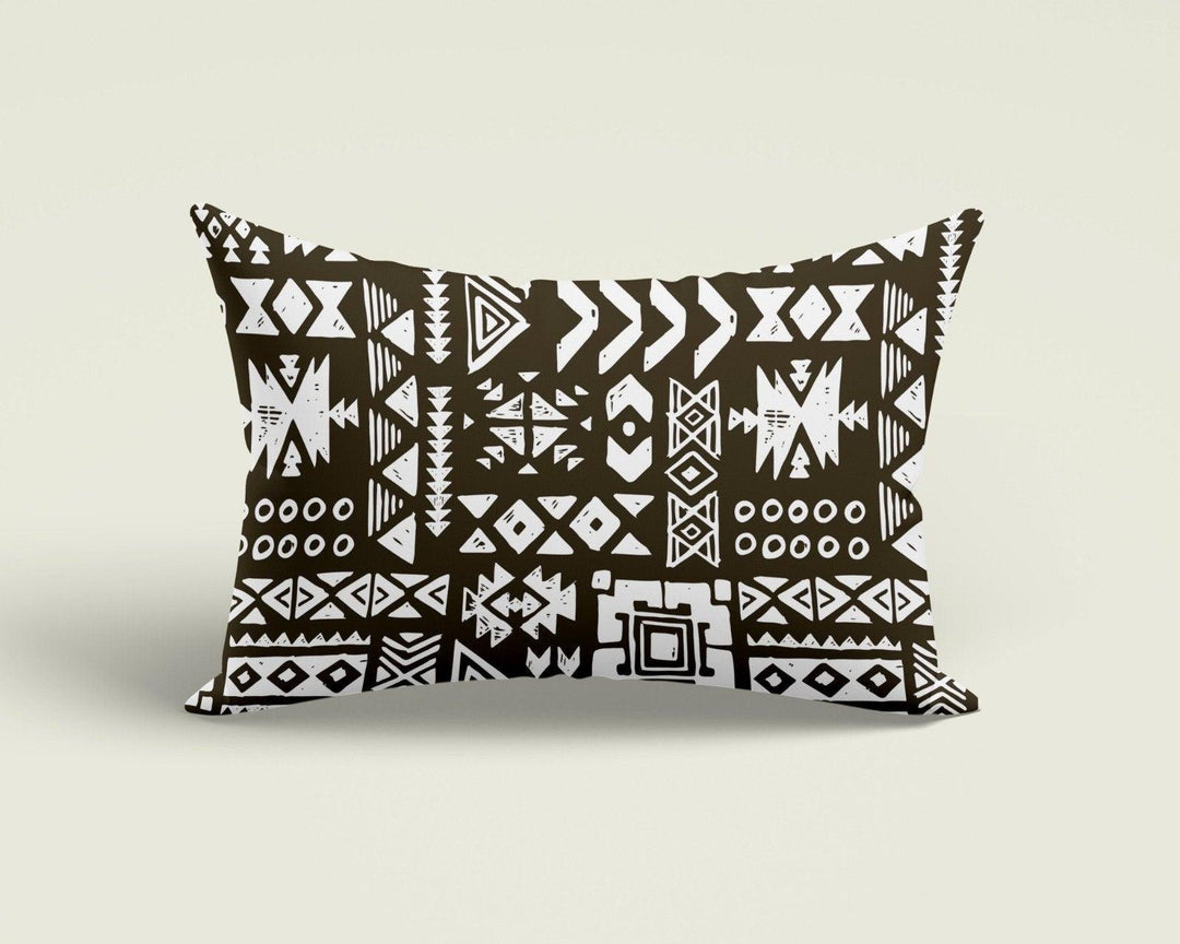 These decorative rectangular lumbar pillow covers with ethnic, tribal, nordic, aztec print and African design;