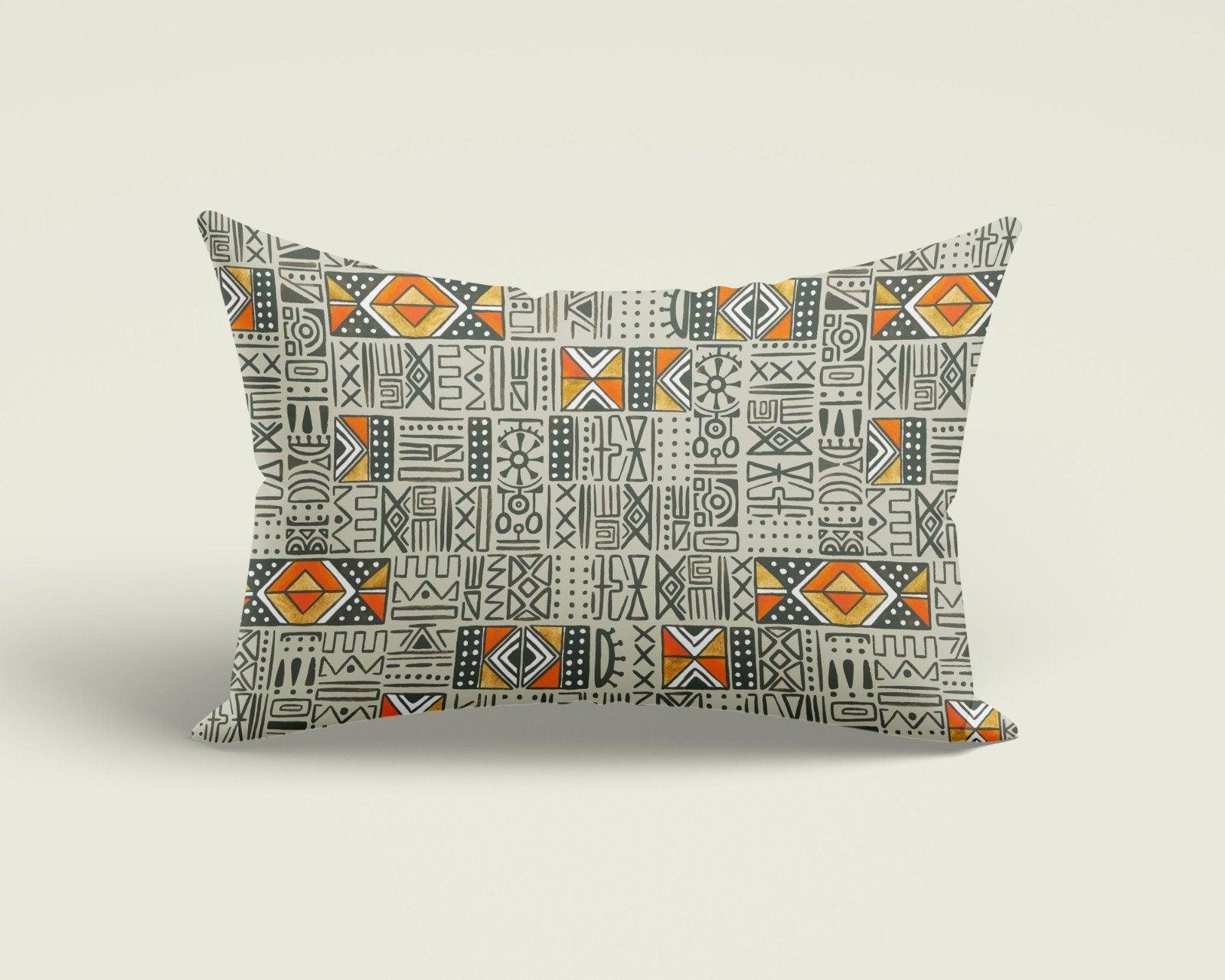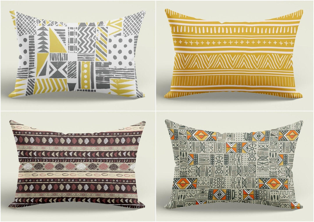 These decorative rectangular lumbar pillow covers with ethnic, tribal, nordic, aztec print and African design;