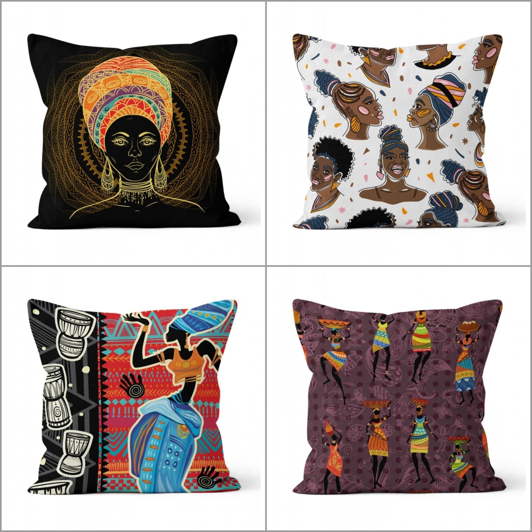 These elegant stylish and high quality ethnic throw pillow covers with colorful African women and girls;