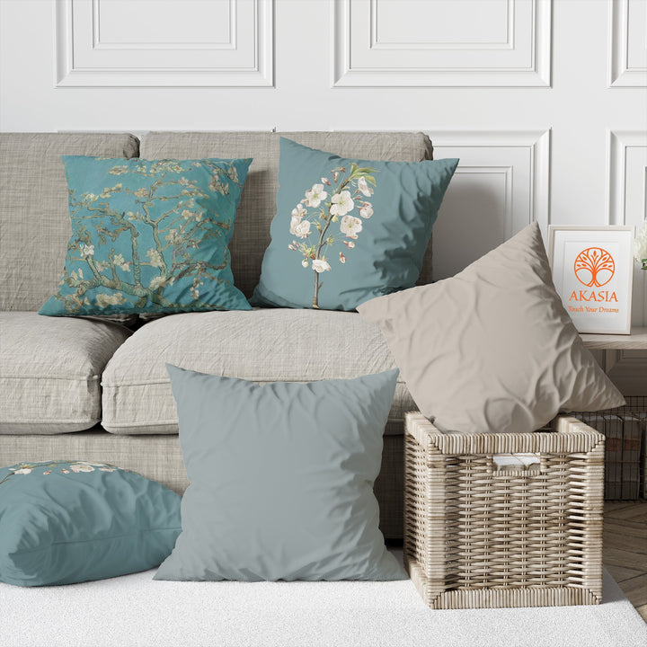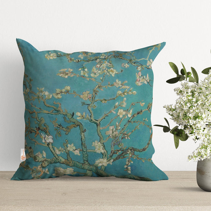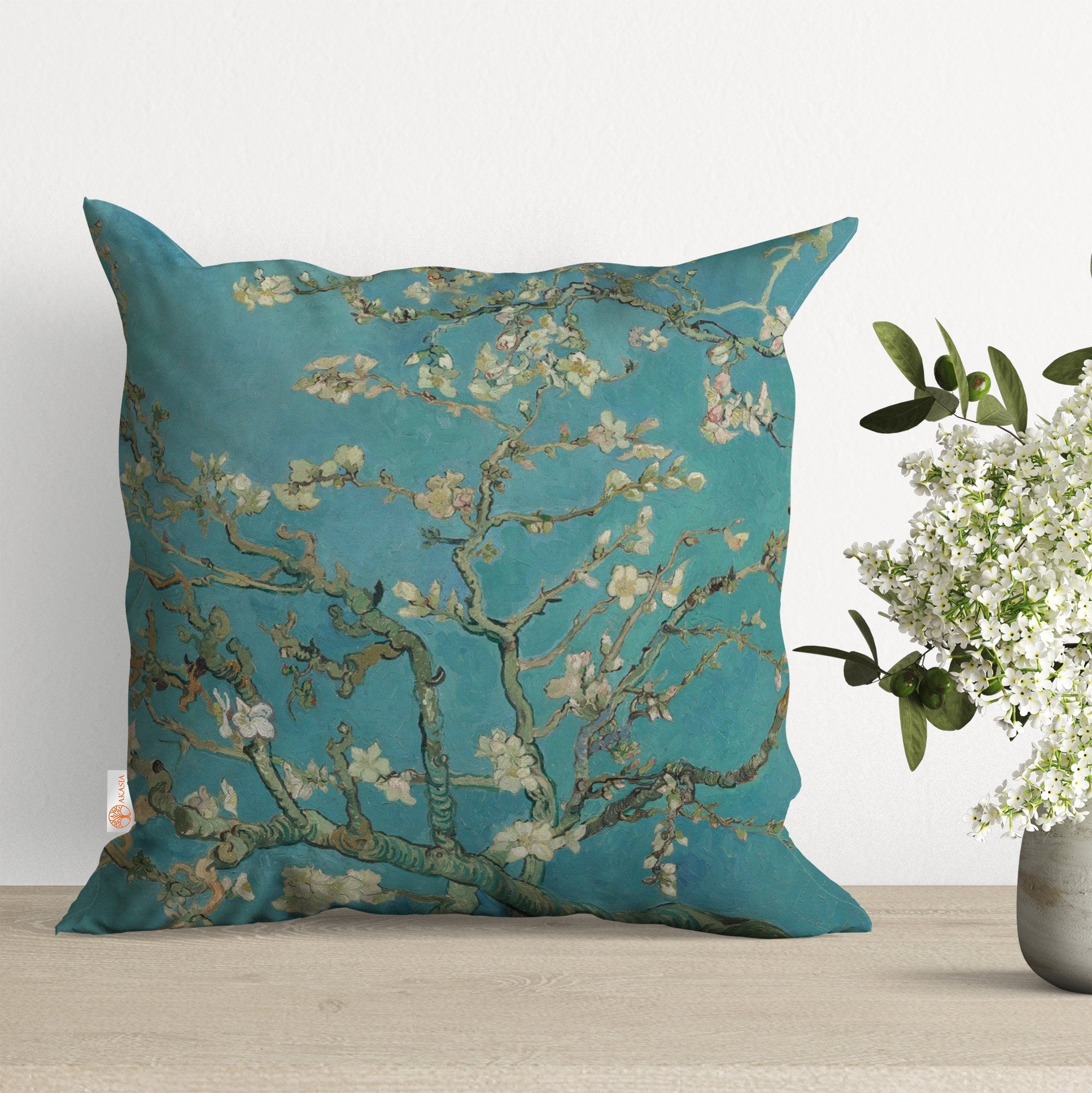 These elegant square decorative farmhouse throw pillow covers with Almond Blossom by Van Gogh print;