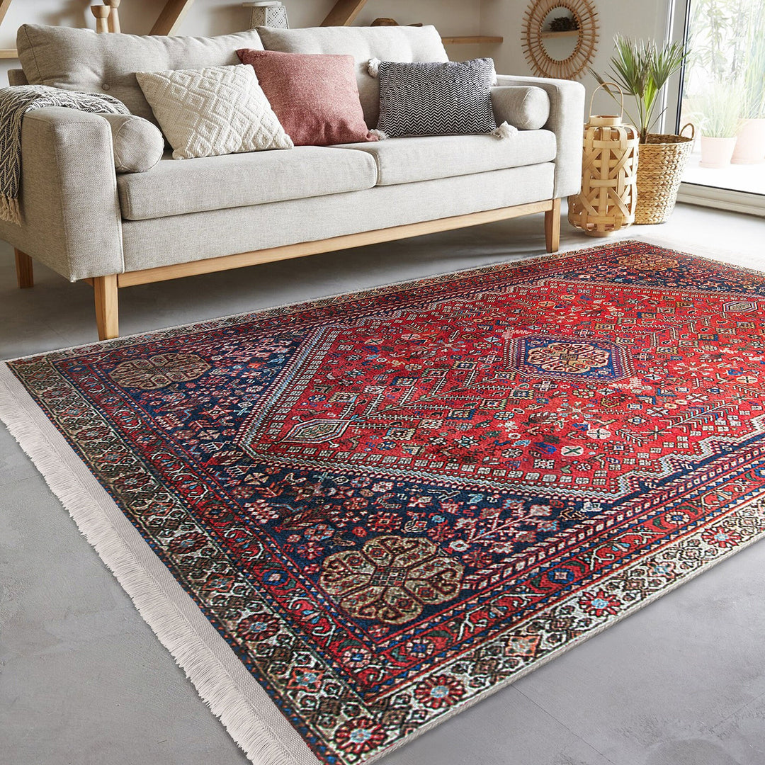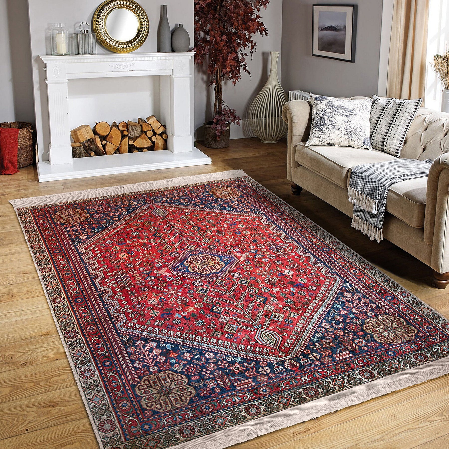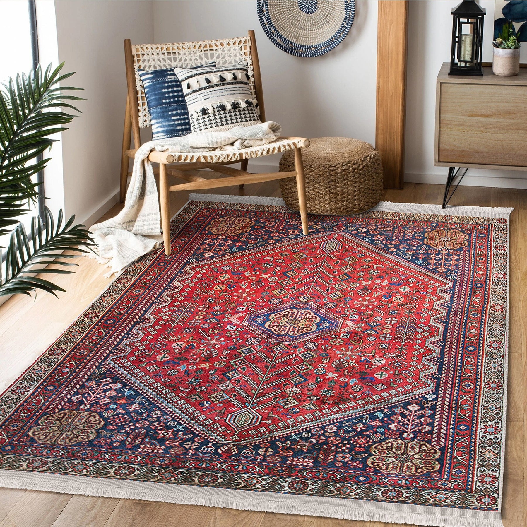 This elegant Machine-Washable floor rug with Kilim Pattern print;