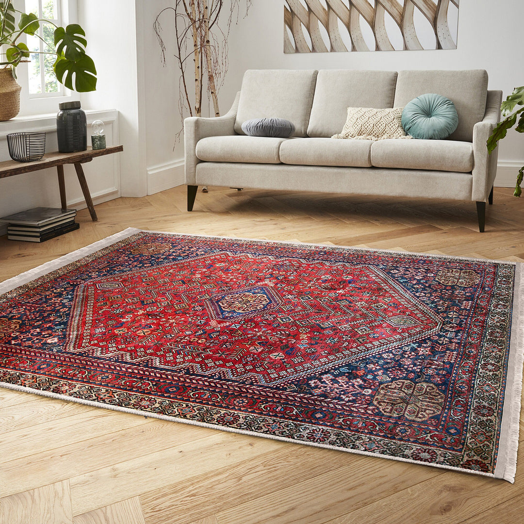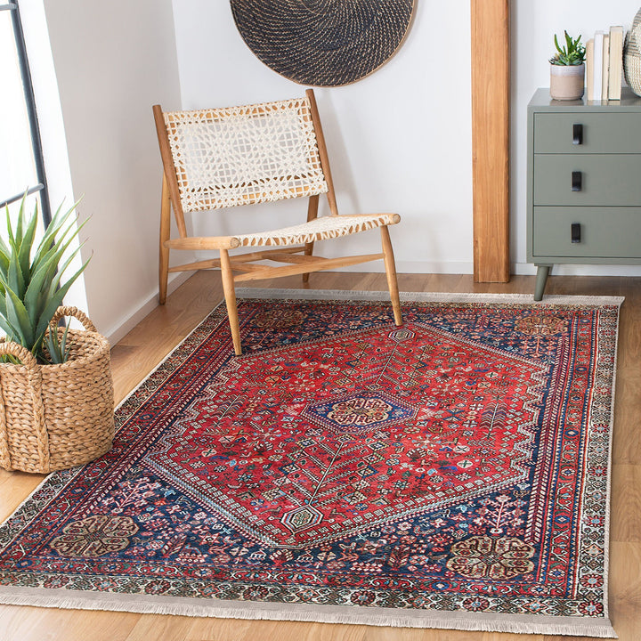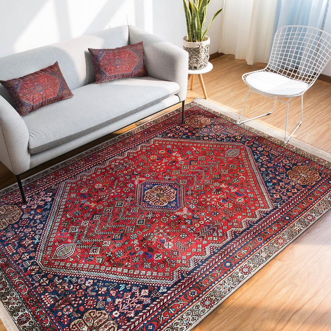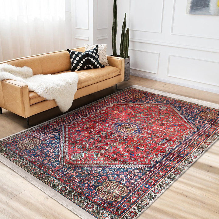 This elegant Machine-Washable floor rug with Kilim Pattern print;