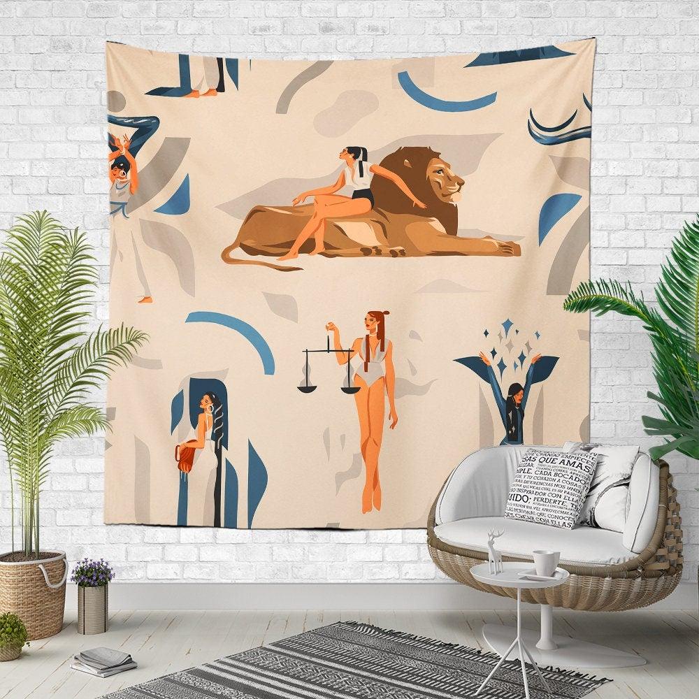 This elegant square fabric wall hanging decor with Ancient Egypt, ancient lords, ethnic symbols, woman and lion prints print reflect your life perspective and;