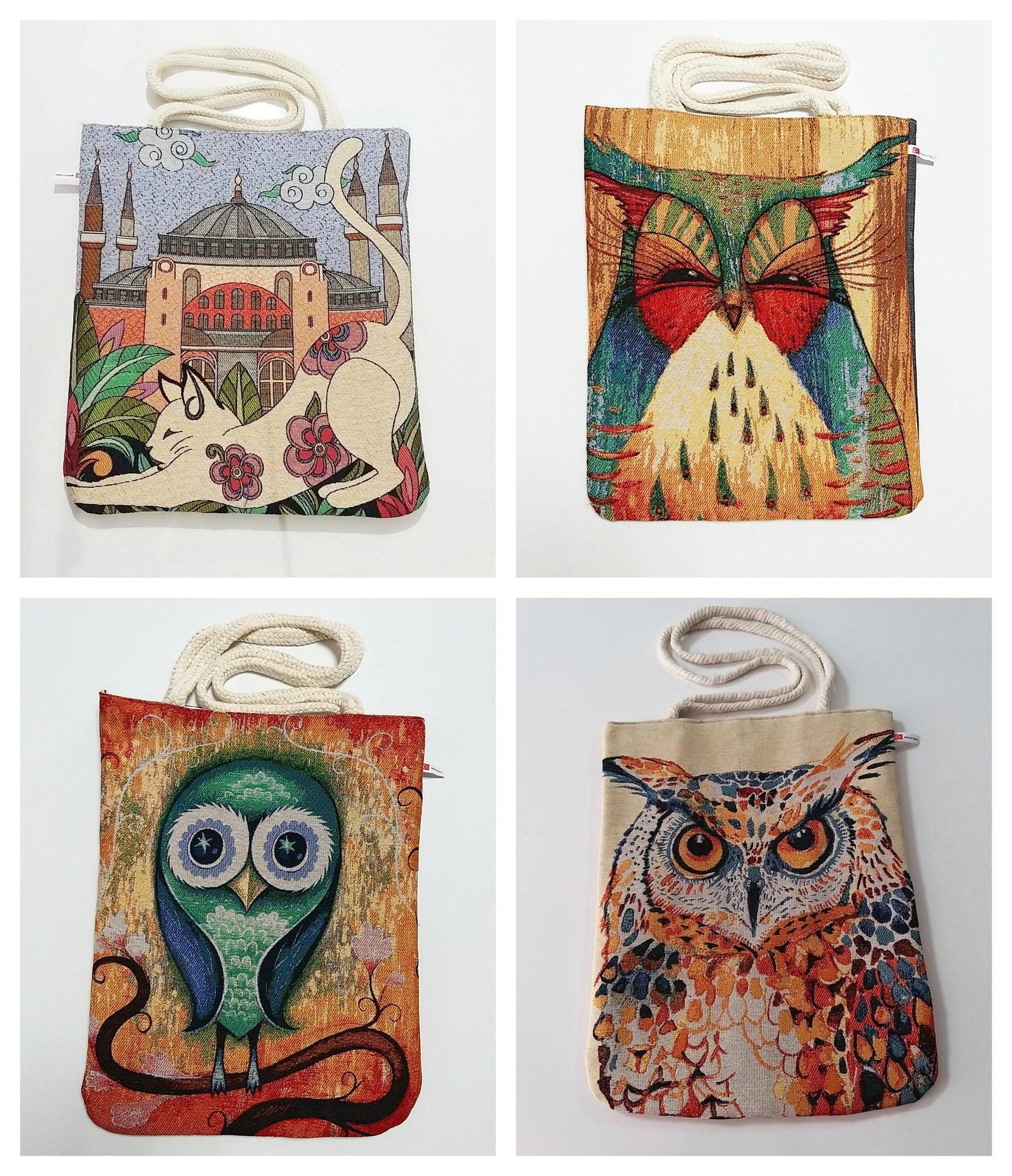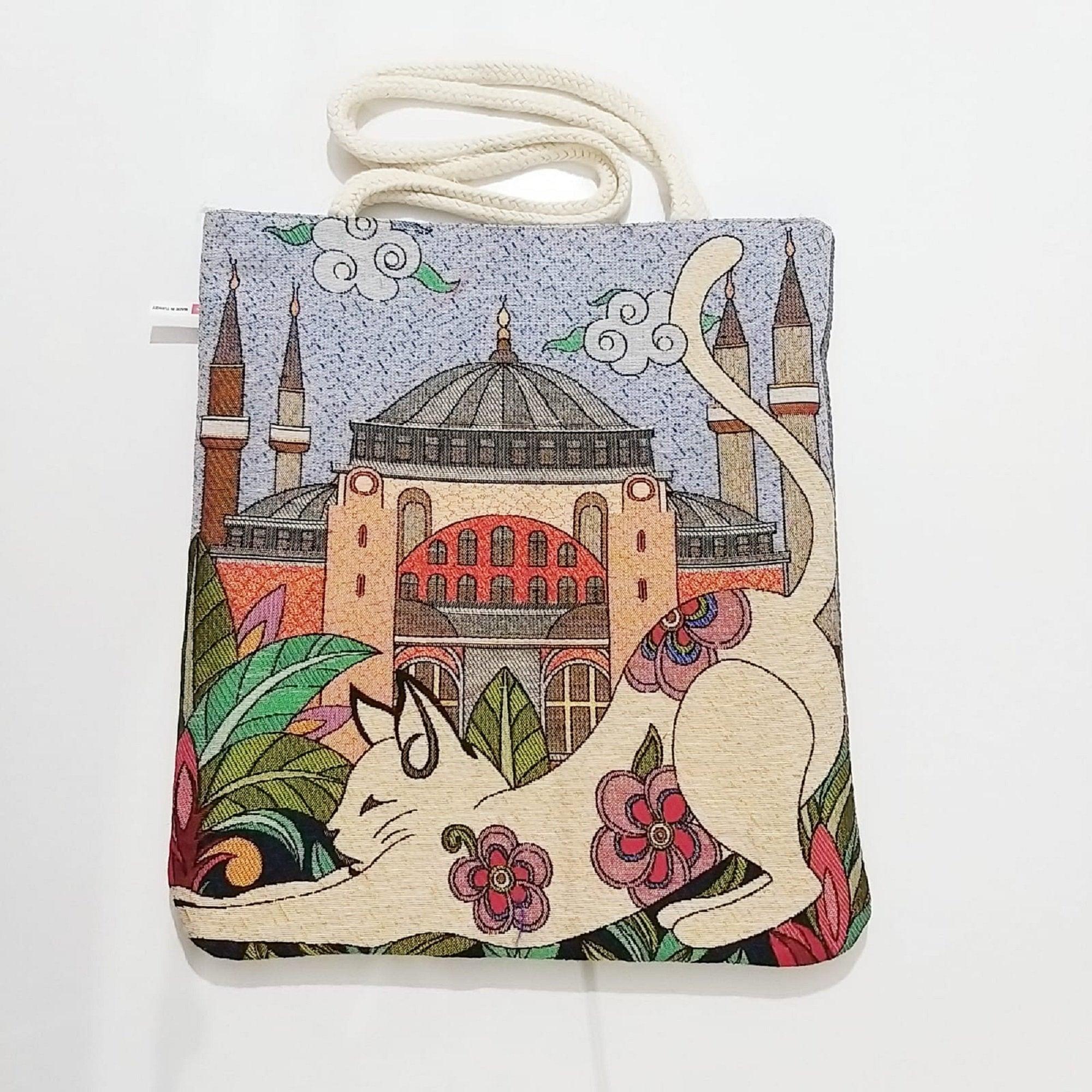 This elegant Hagia Sophia, cats and owls designed tapestry bag;