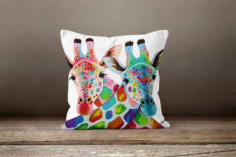 Giraffe and Cat Throw Pillow Case