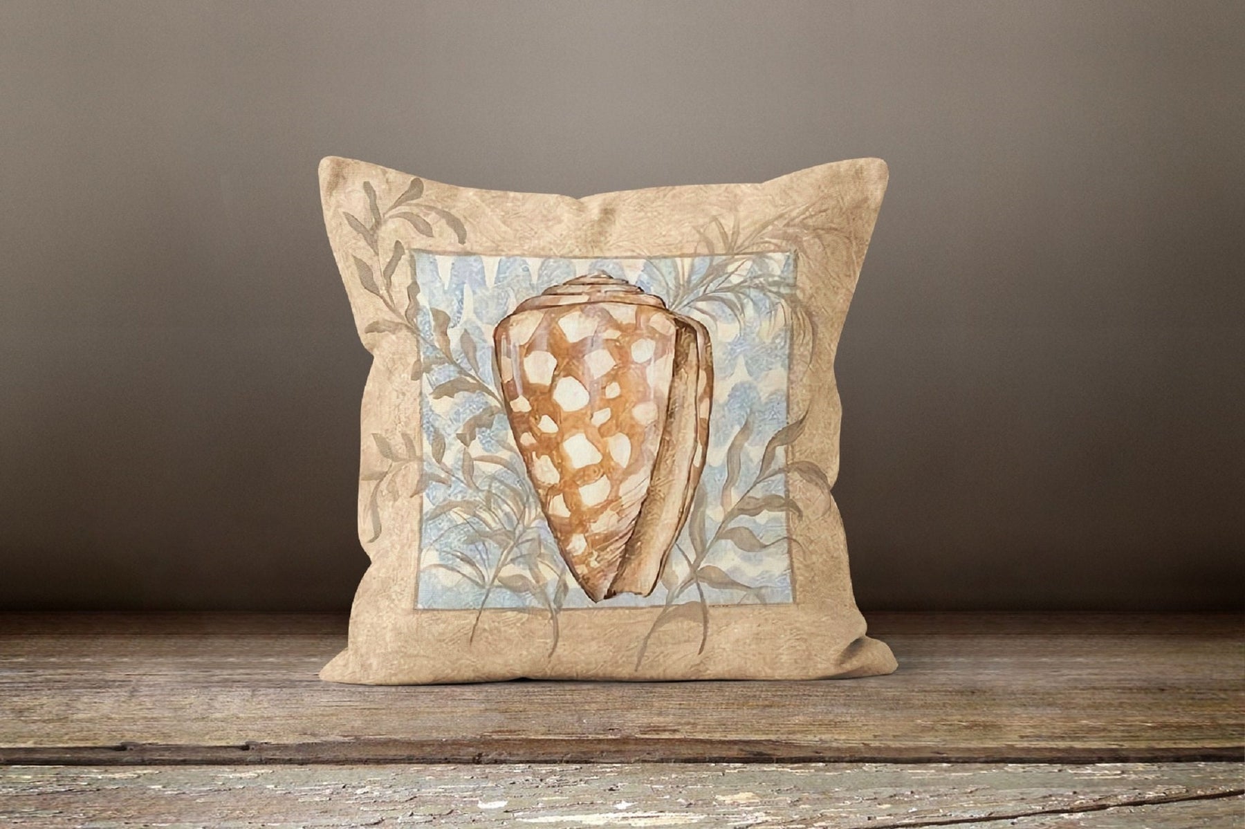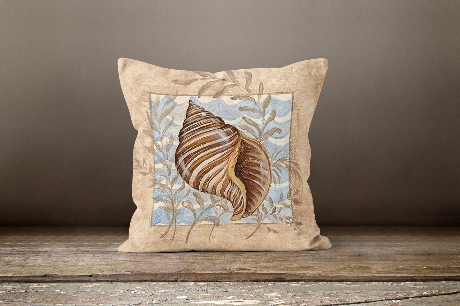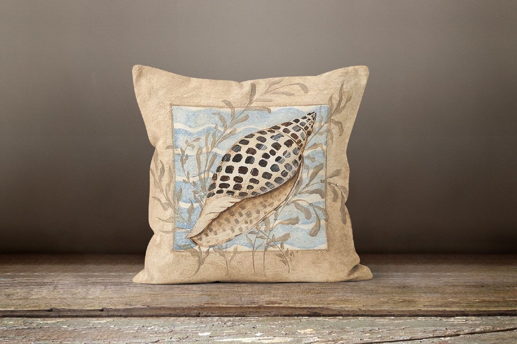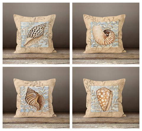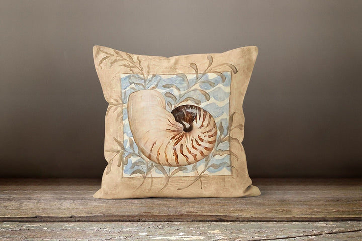 Beige Marine Pillow Cover with Seashell