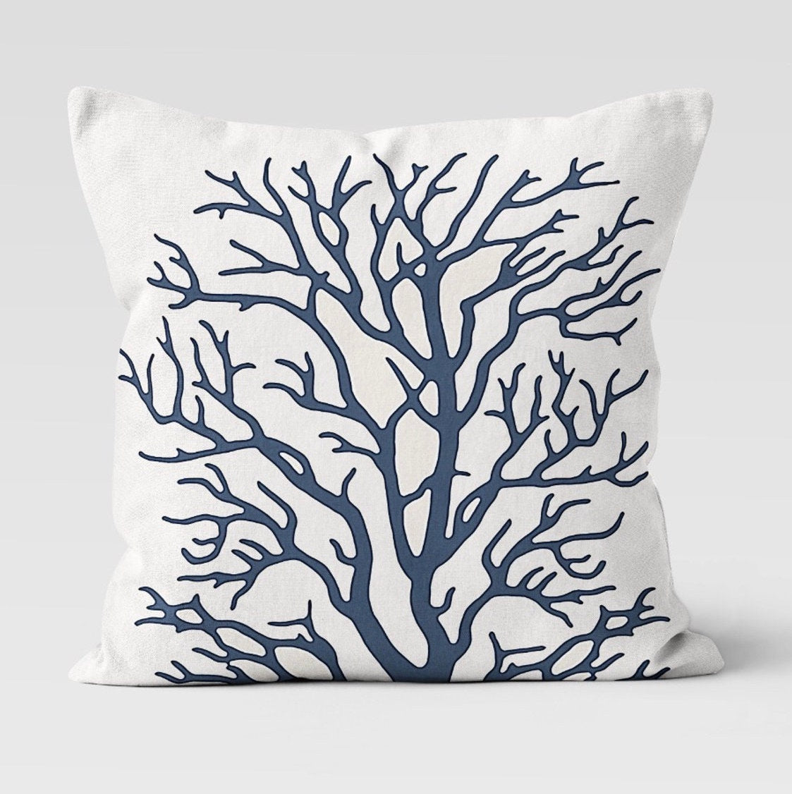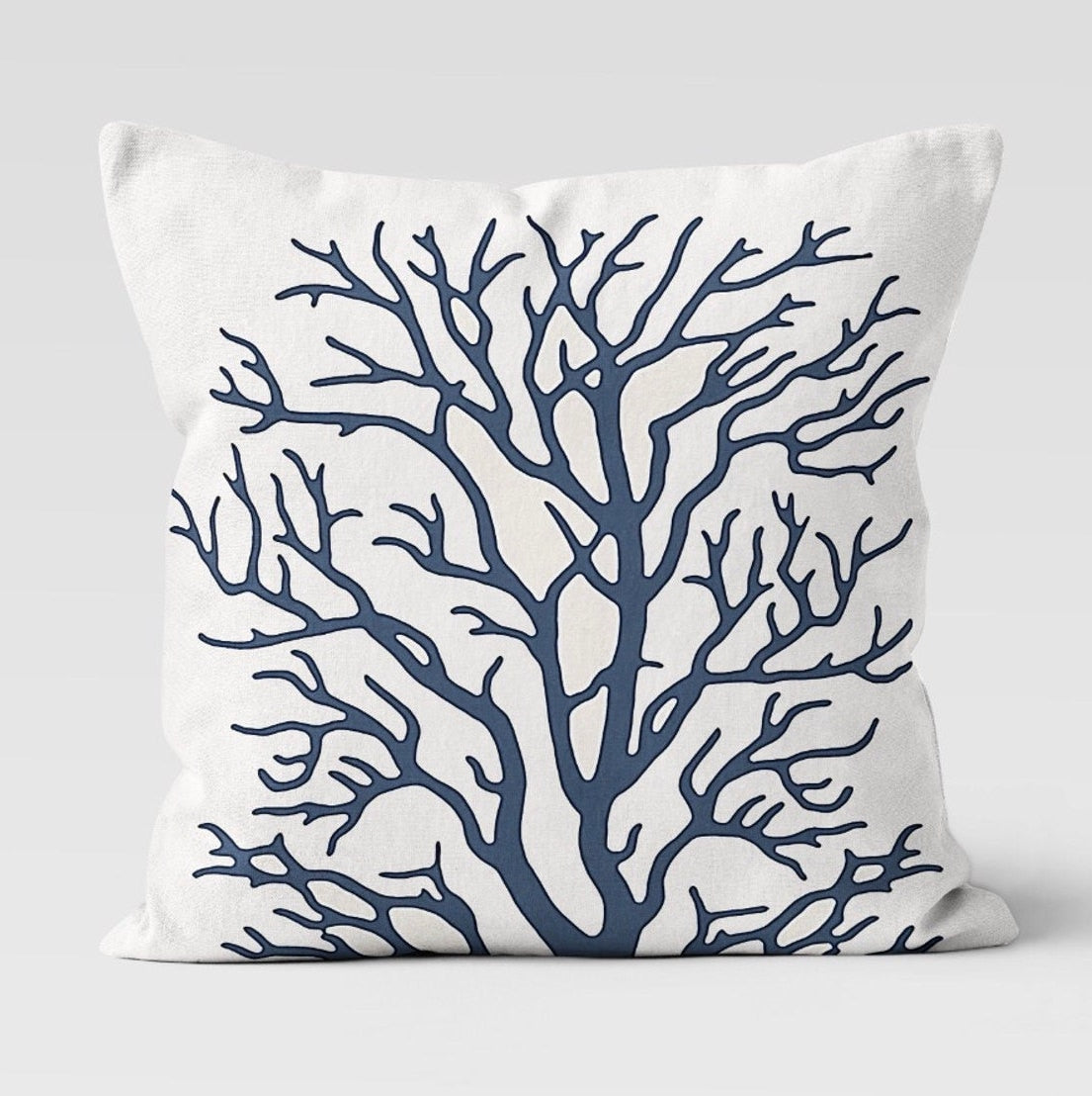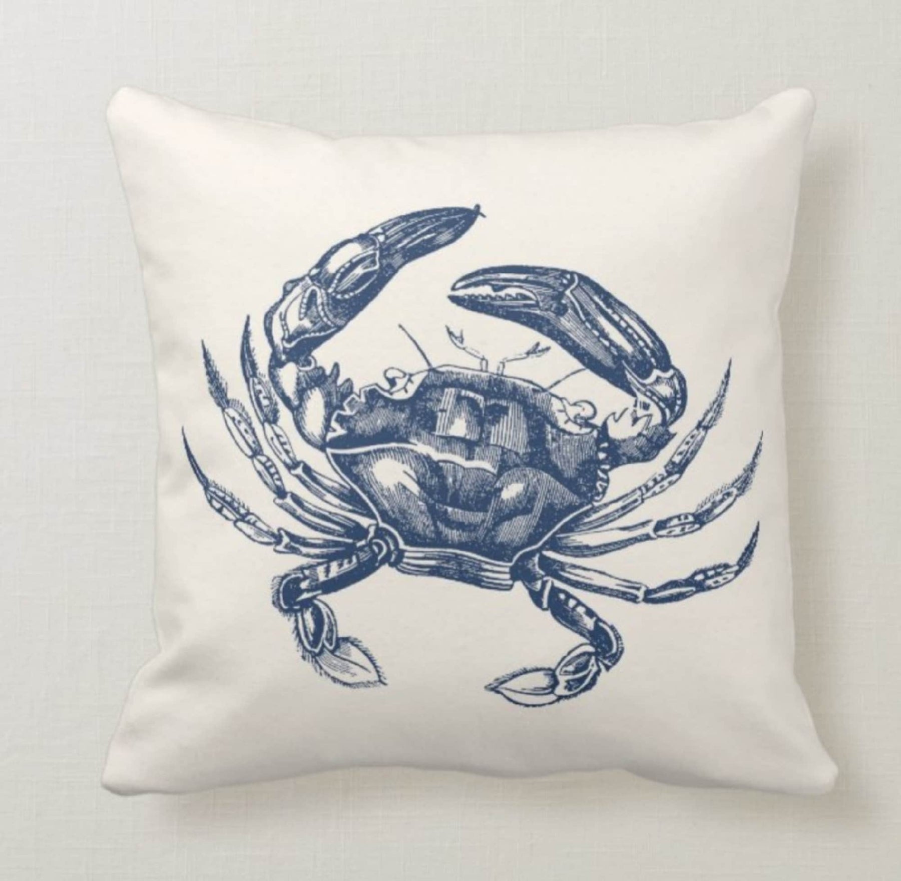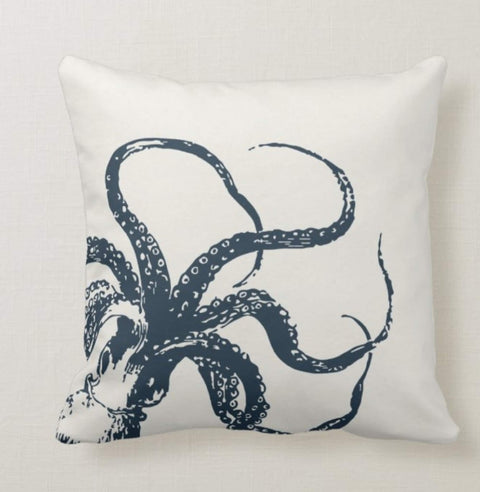 Beach House Pillow Case|Navy Marine Pillow Cover|Nautical Blue Gray Cushion|Seaweed Throw Pillow|Octopus Crab Home Decor|Porch Pillow Case
