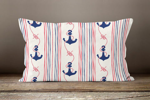 Beach House Pillow Case|Coastal Lumbar Pillow|Starfish Cushion|Navy Anchor Rectangle Lumbar Pillow|Seashell Pillow Cover|Octopus Pillow Top