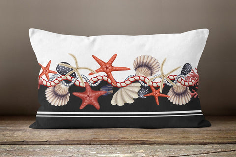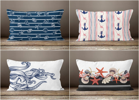 These decorative rectangle beach house lumbar pillow covers with starfish, seashell, octopus and navy anchor;
