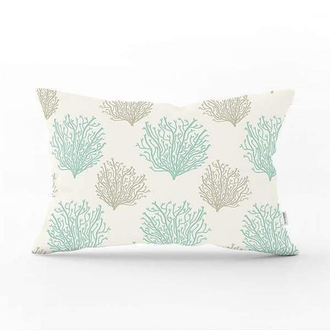 Rectangle Beach House Pillow with Seashell and Coral