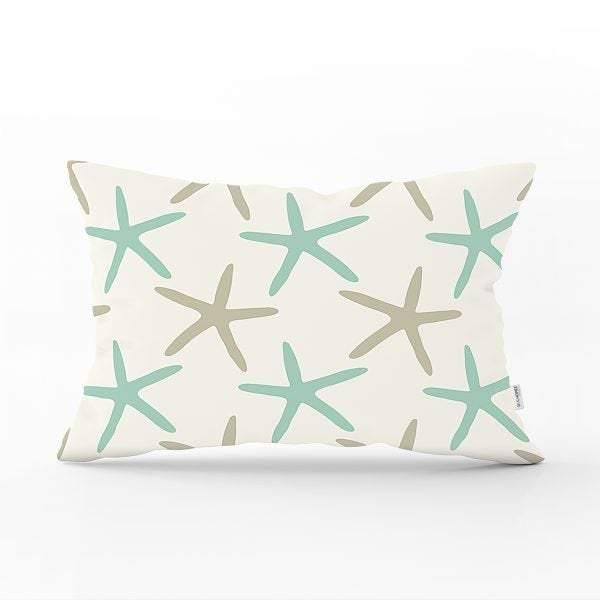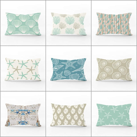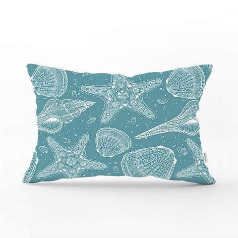 Beach House Pillow Cover|Rectangle Coastal Cushion Case|Decorative Sea Creatures Pillow|Oyster Seashell Starfish and Coral Cushion Cover
