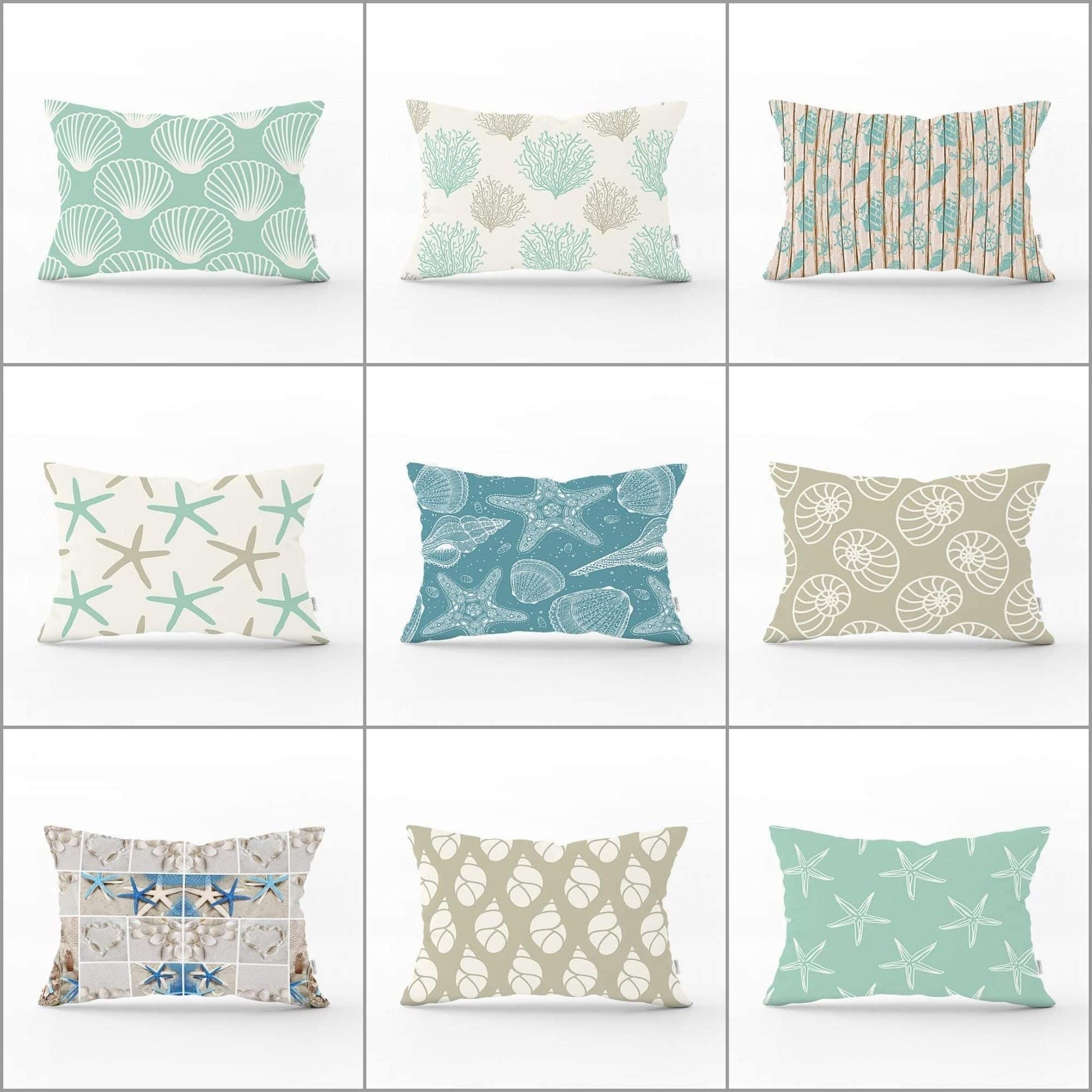 These rectangle beach house pillow covers with sea creatures;