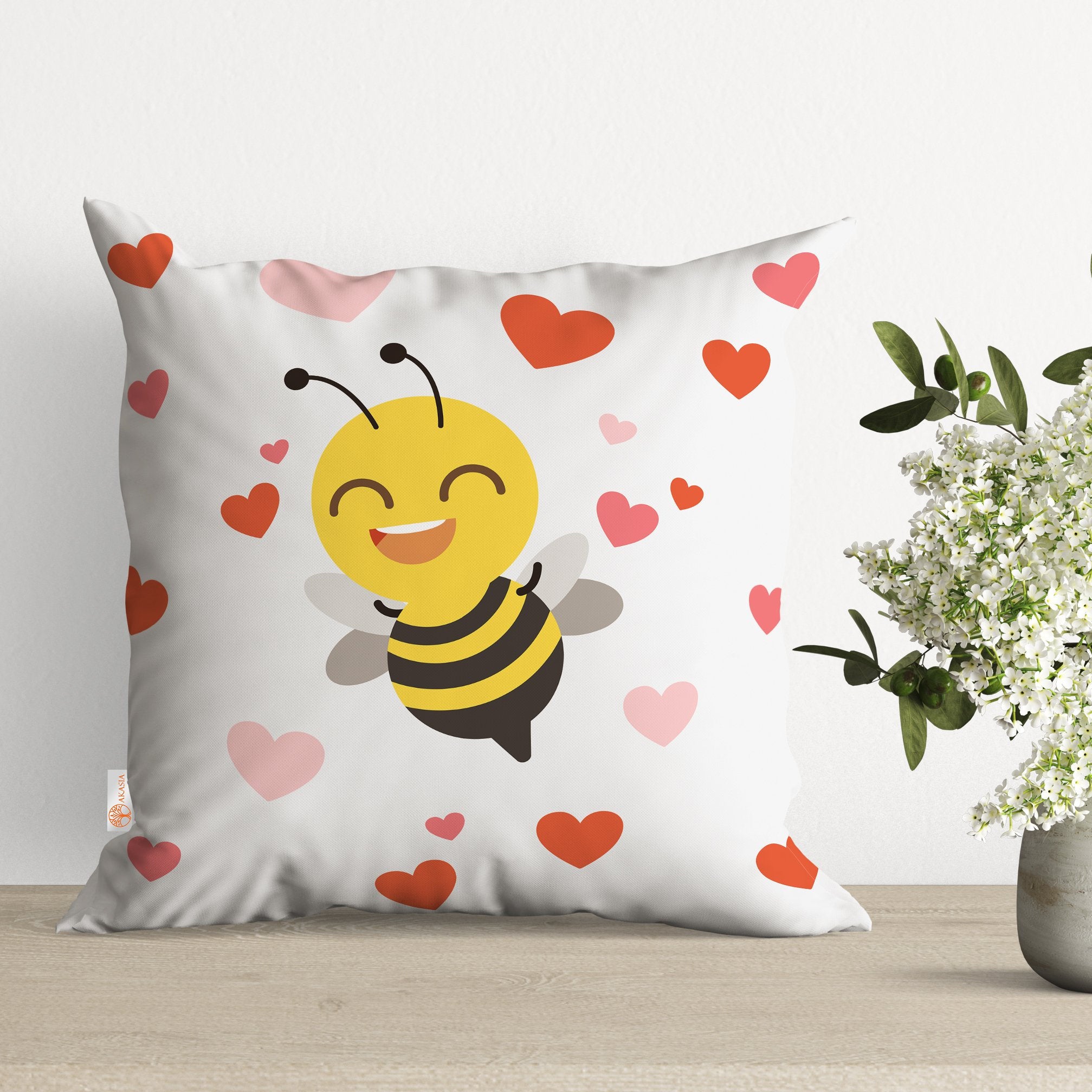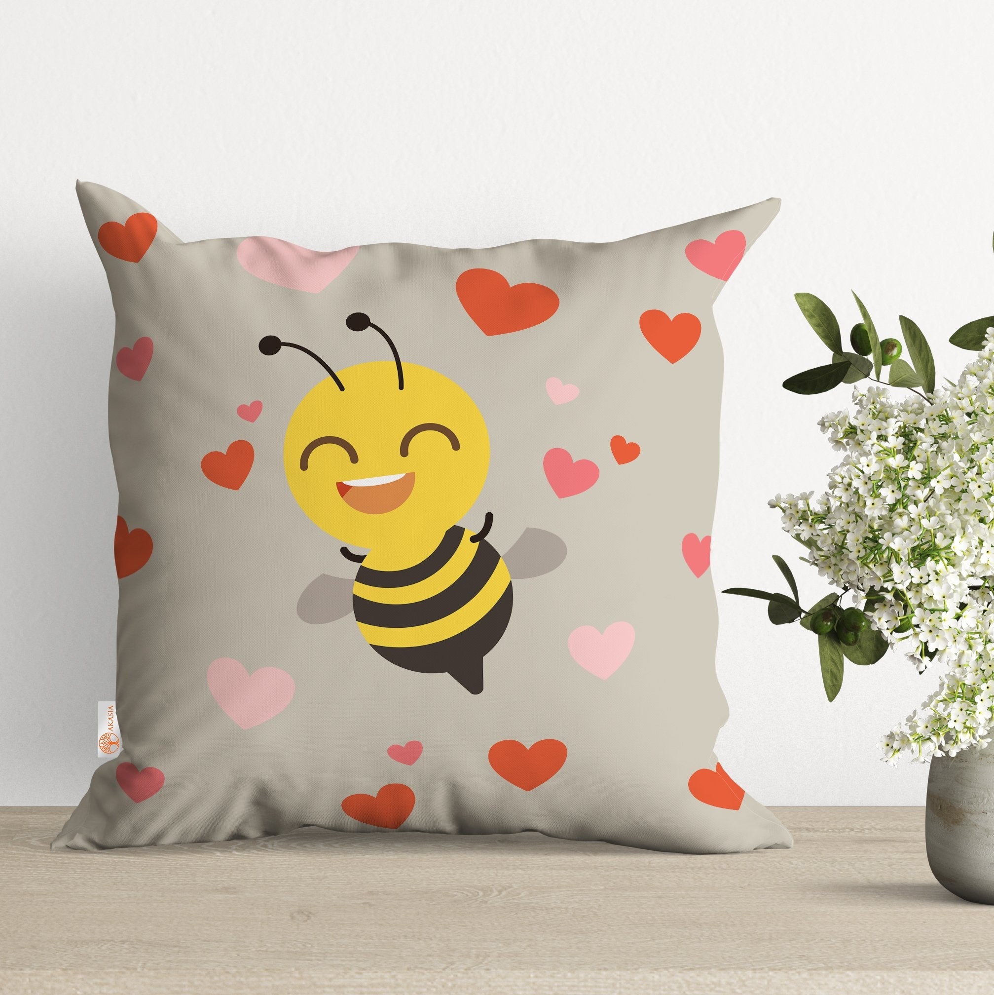 These elegant square decorative farmhouse throw pillow covers with cute bee, honeycomb and red heart prints;