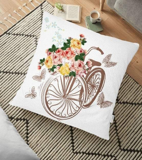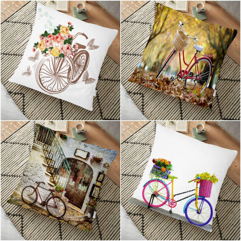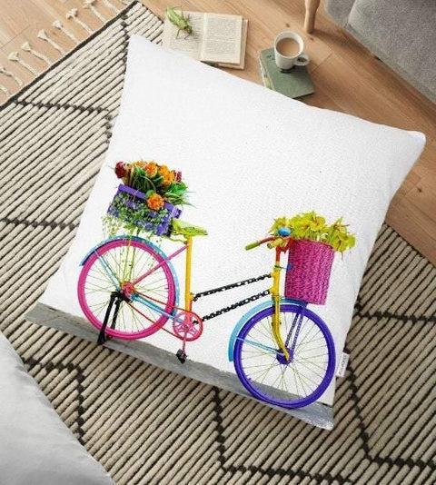 These elegant stylish and high quality square colorful bike themed floor pillow covers;
