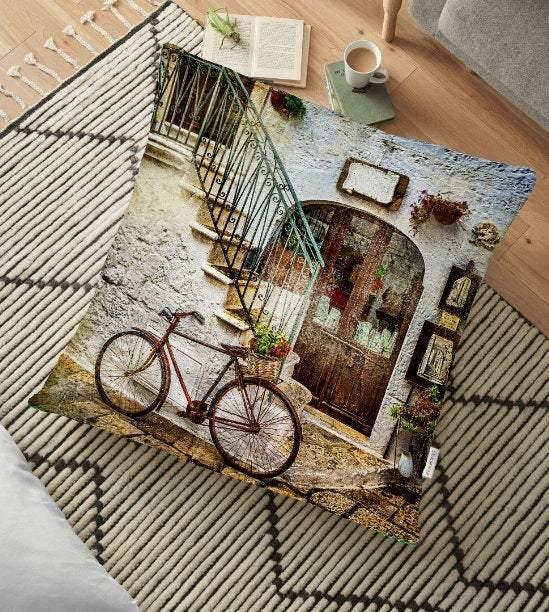 Imagine these "Bike Floor Pillows" on your room's floor to welcome your family and friends!