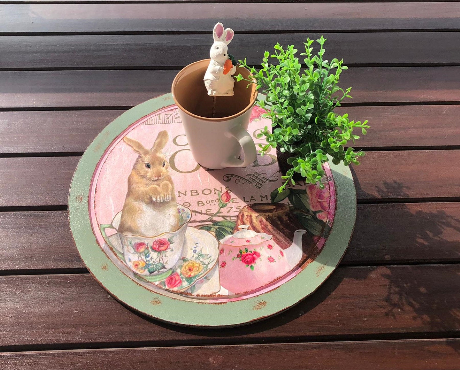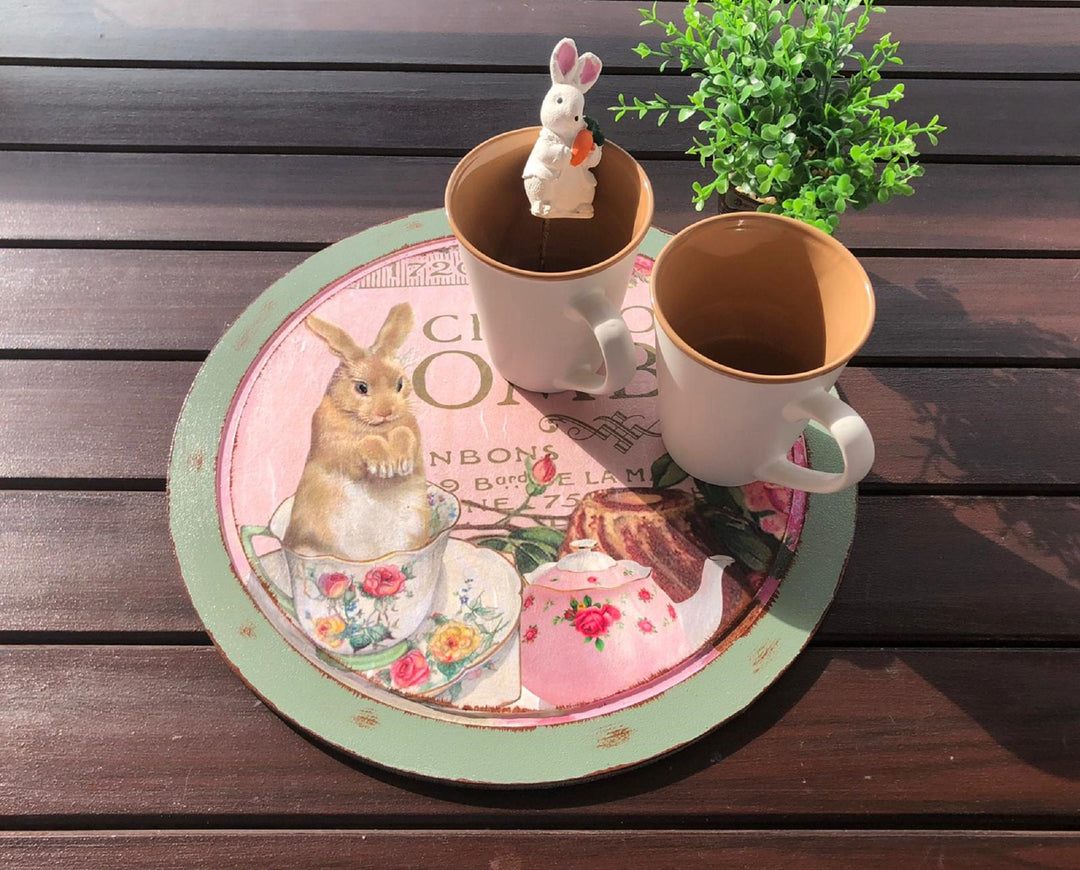 Board For Easter|Hand Painted Round Wooden Tray|Easter Bunny Tray|Custom Serving Board|Presentation Plate|Original Home Decor Gift For Mom