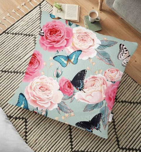 These elegant stylish and high quality square colorful butterfly floor pillow covers;