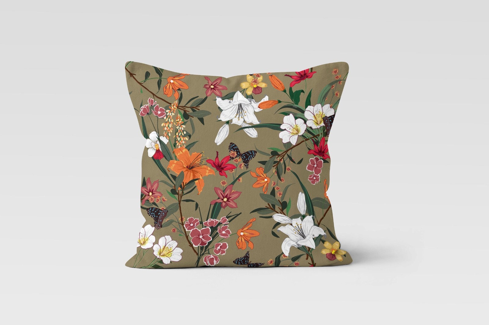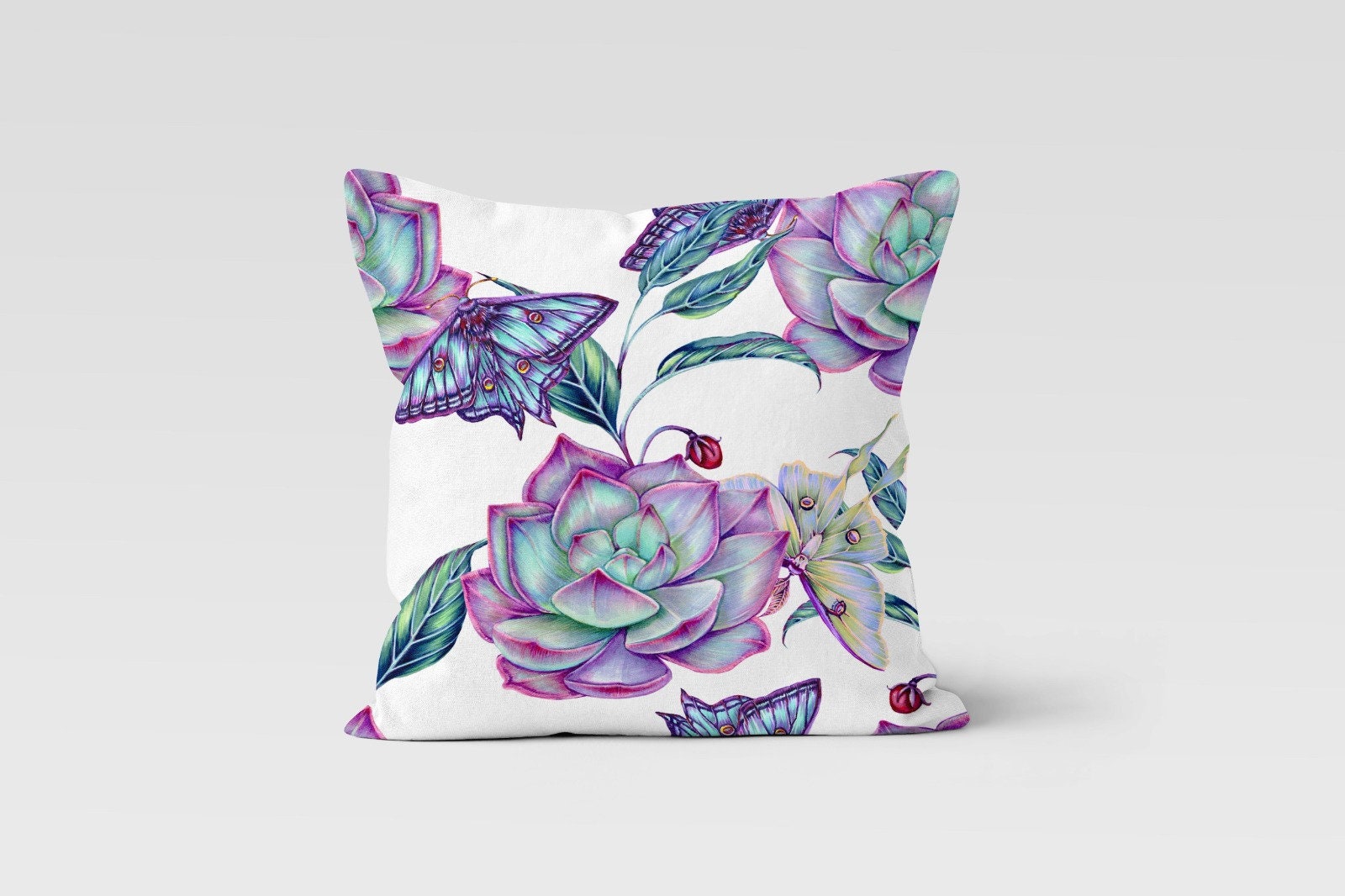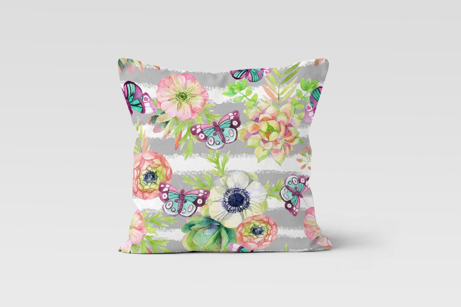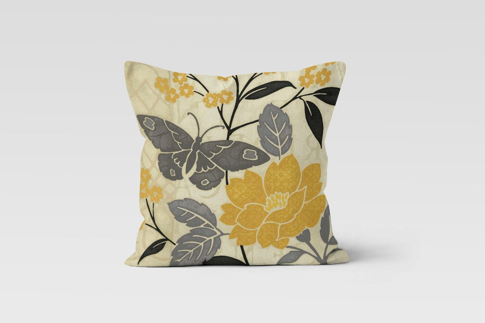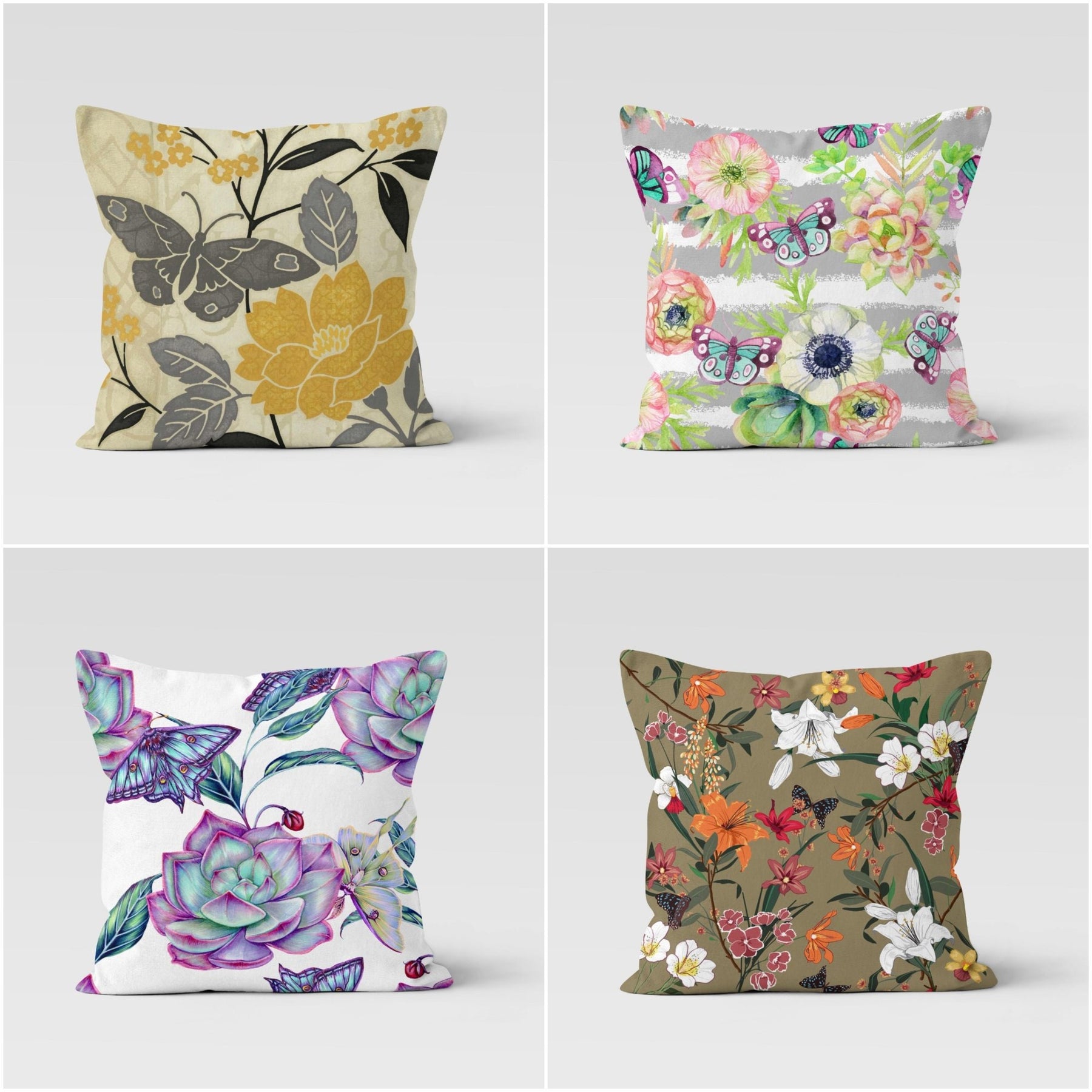 These square decorative farmhouse throw pillow covers with butterflies and flowers;