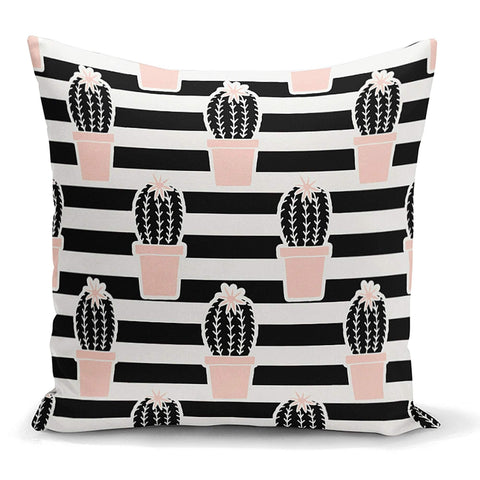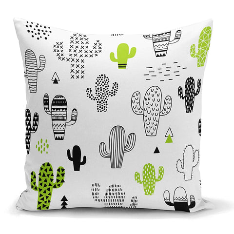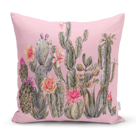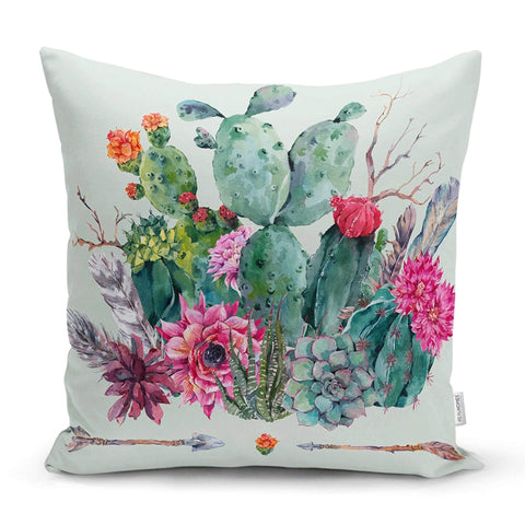 These green, pink, black and white decorative throw/lumbar pillow covers with floral cactus and succulent;