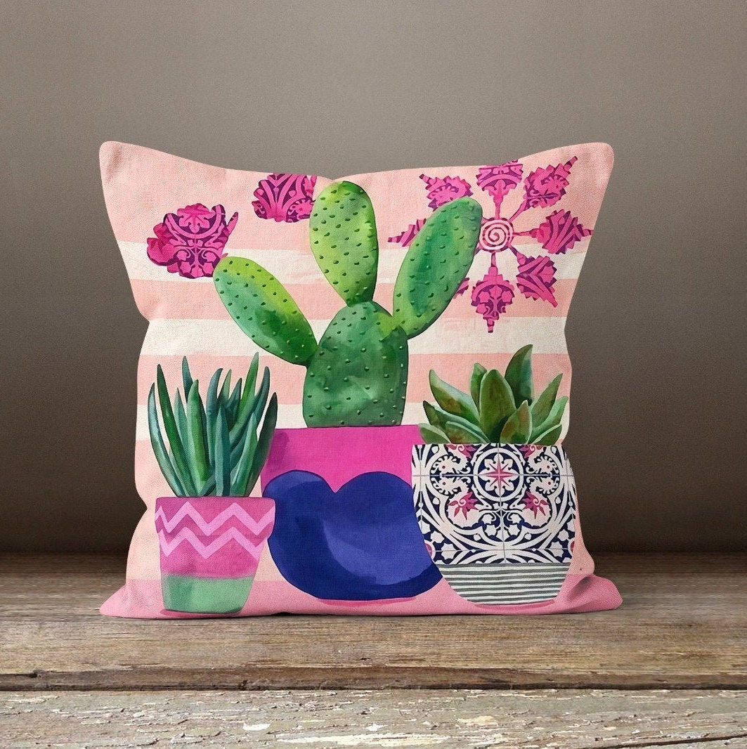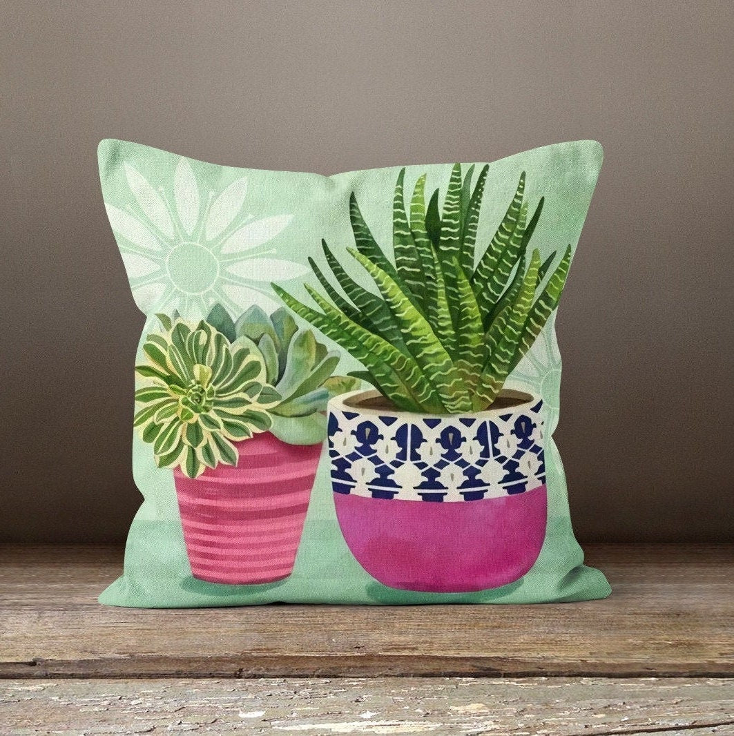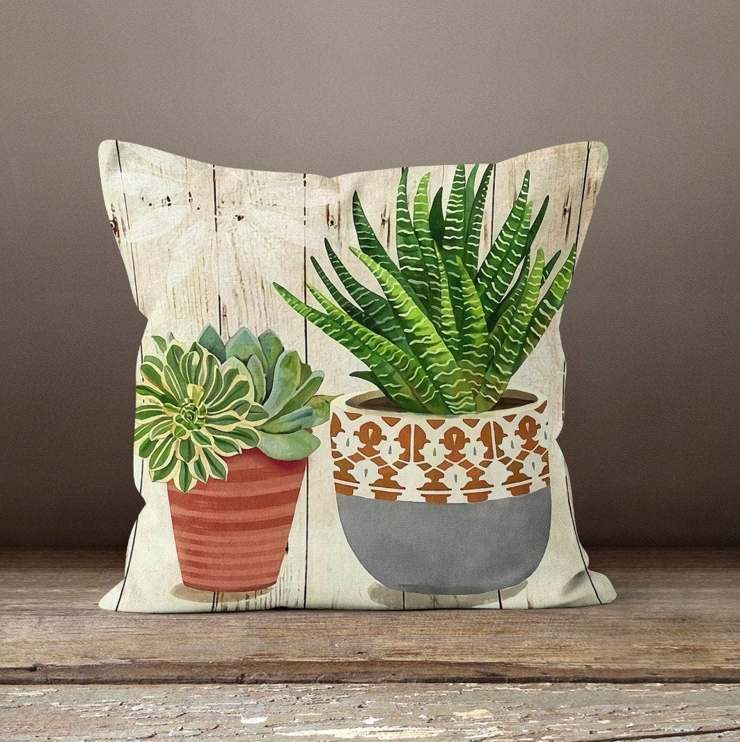 These decorative farmhouse style throw pillow covers with cactus and succulent;