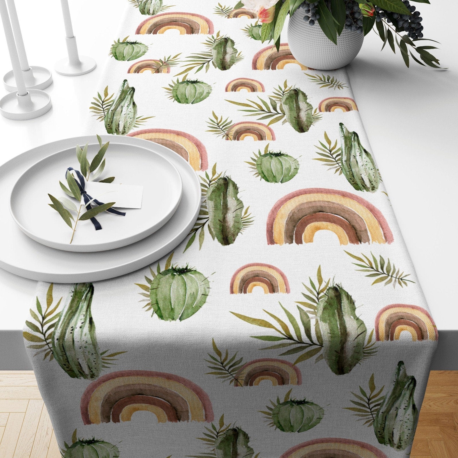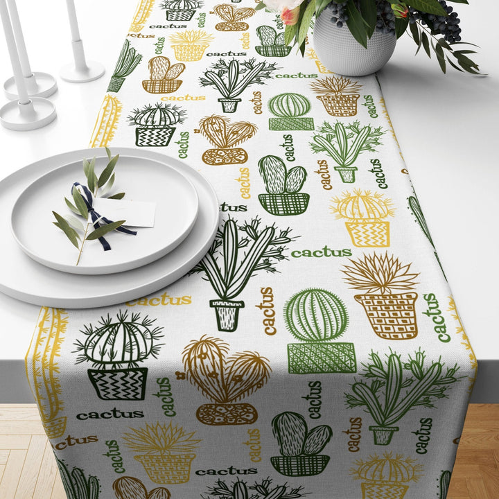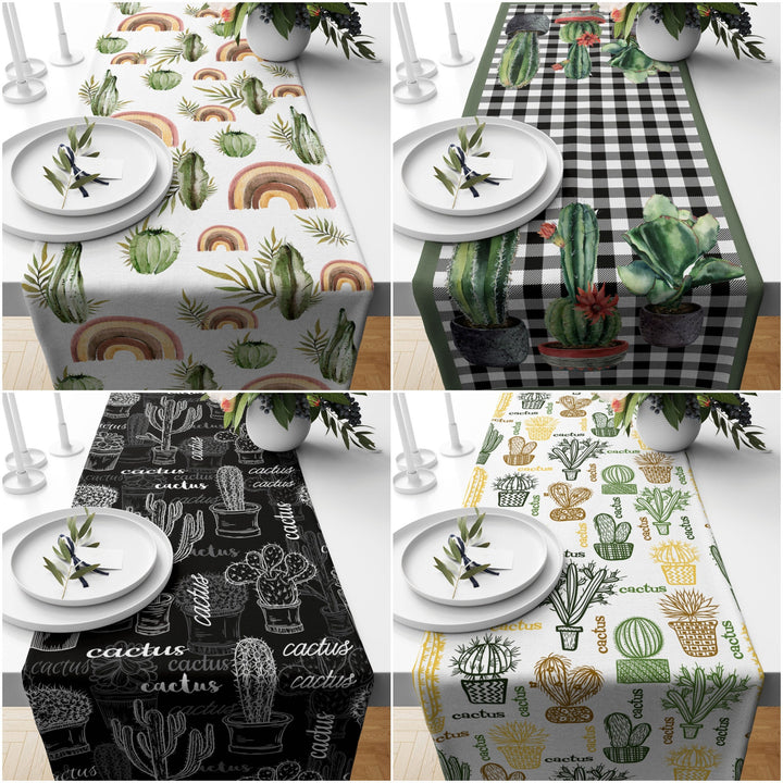 Cactus Table Runner|High Quality Cactus Table Runner|Plaid Succulent Home Decor|Farmhouse Table|Green Cactus Decor|Brown Cactus Tablecloth