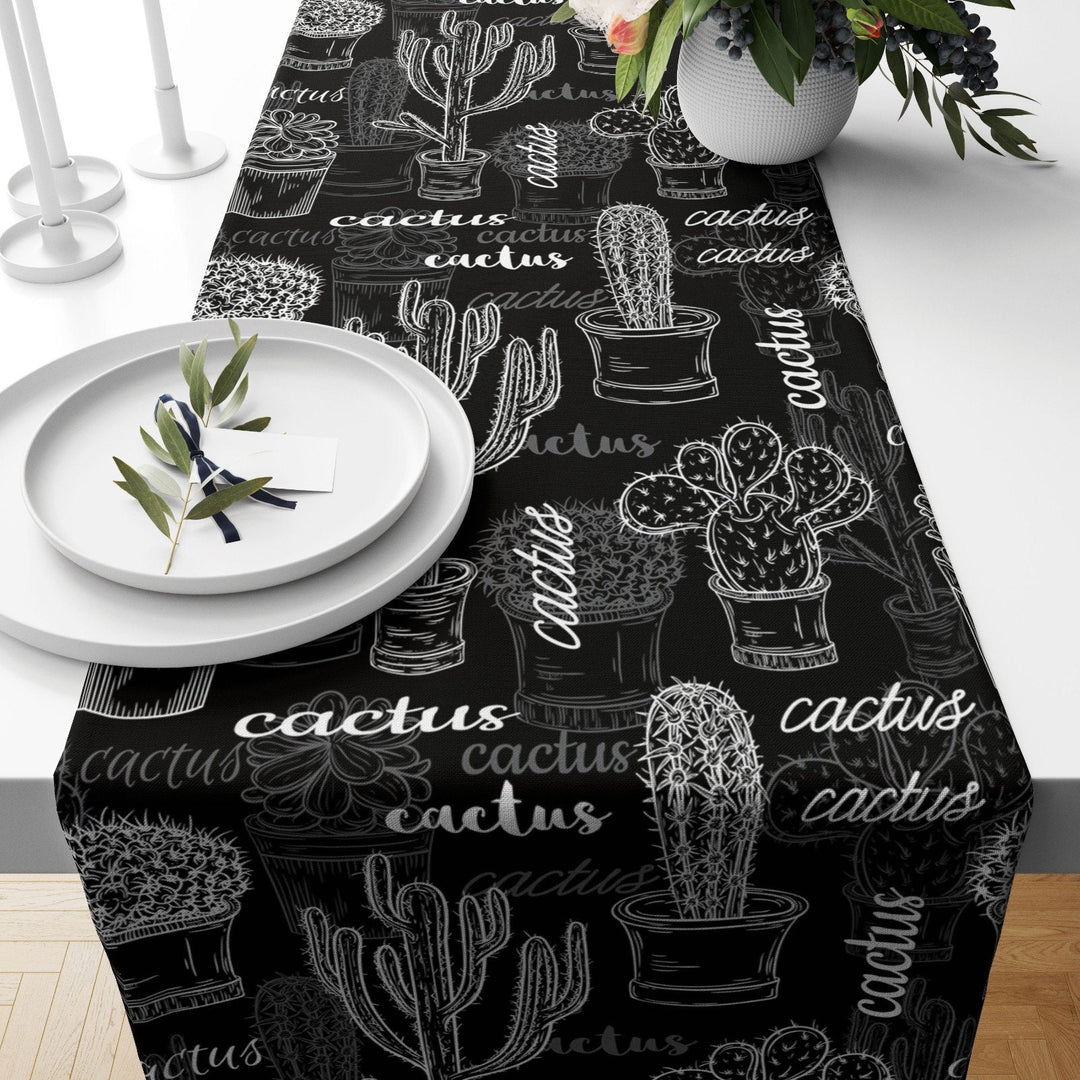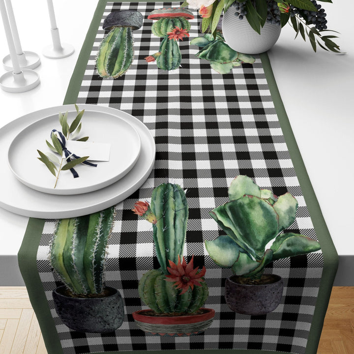 Black White Checkered Cactus Runner