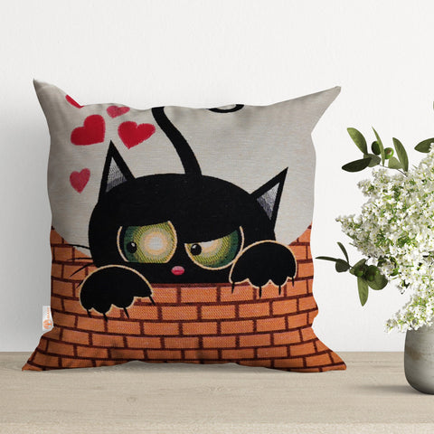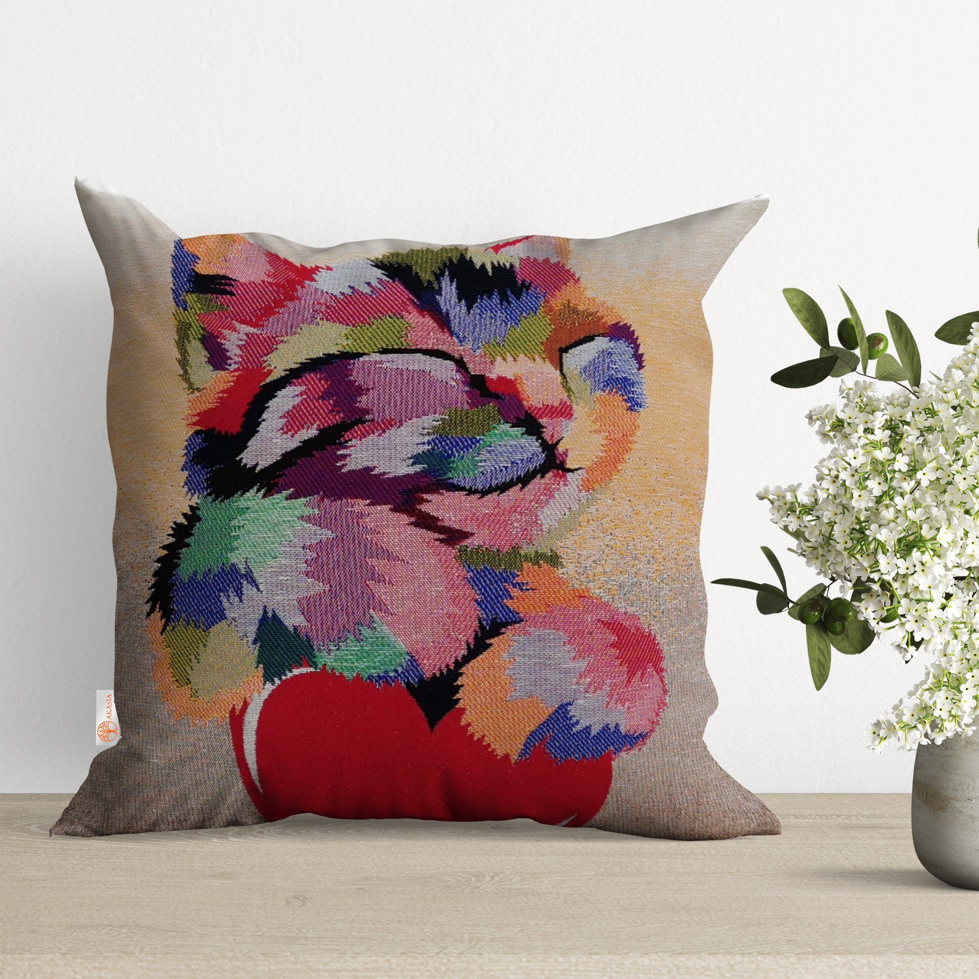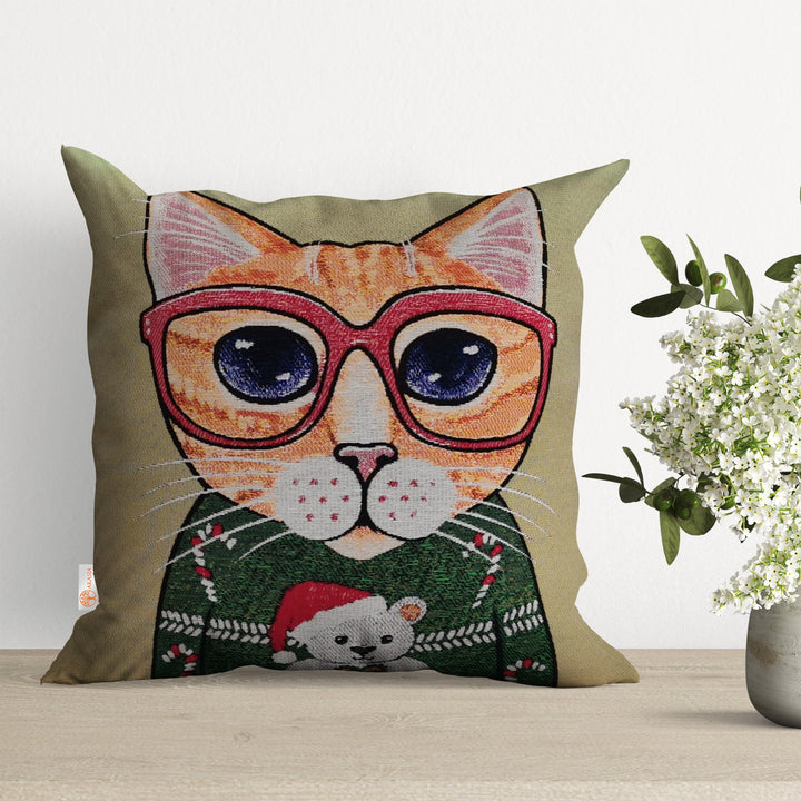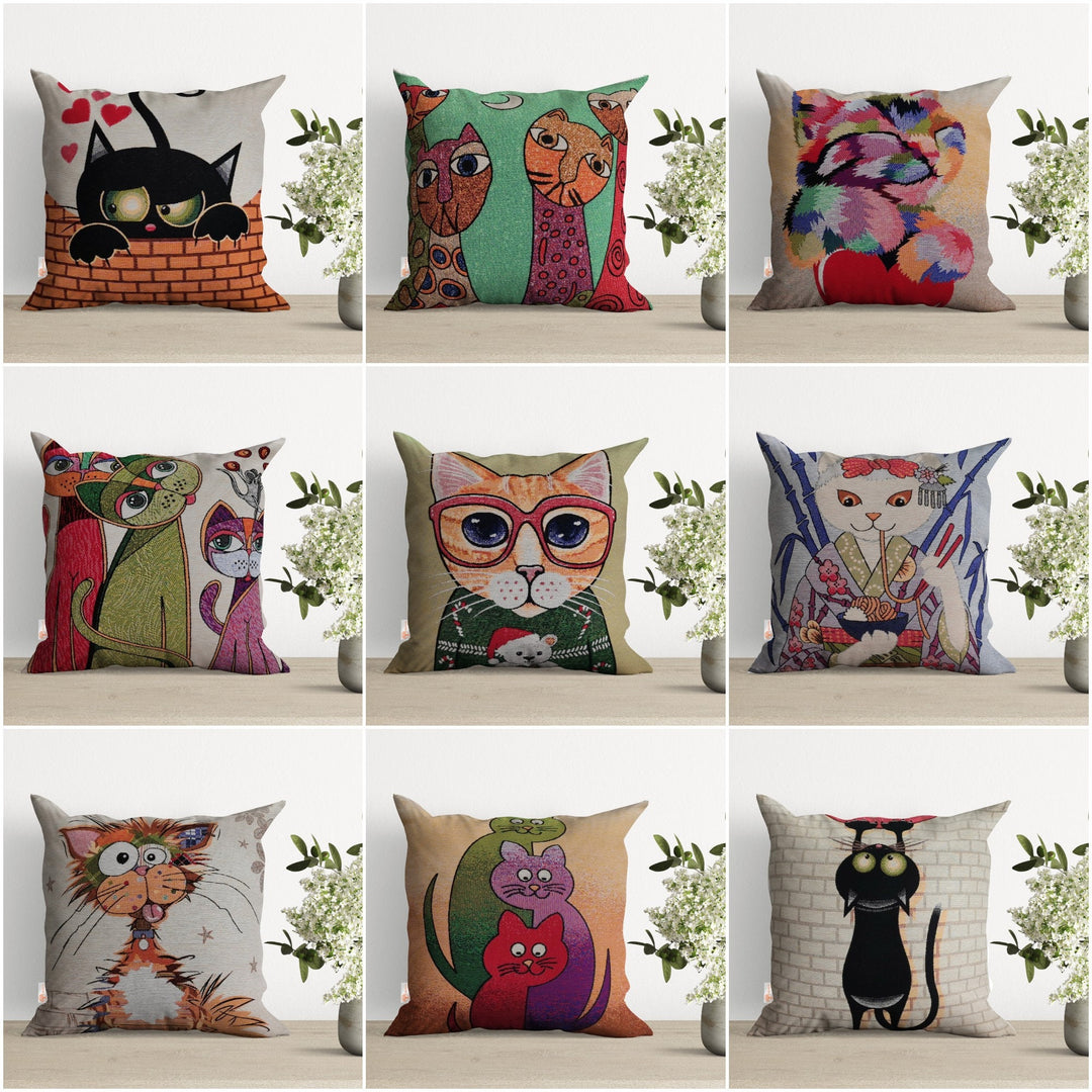 Cat and Dog Pillow Cover|Belgian Gobelin Tapestry Pillow|Authentic Throw Pillowcase|Woven Sofa Cushion|Colorful Cat and Dog Couch Pillowtop