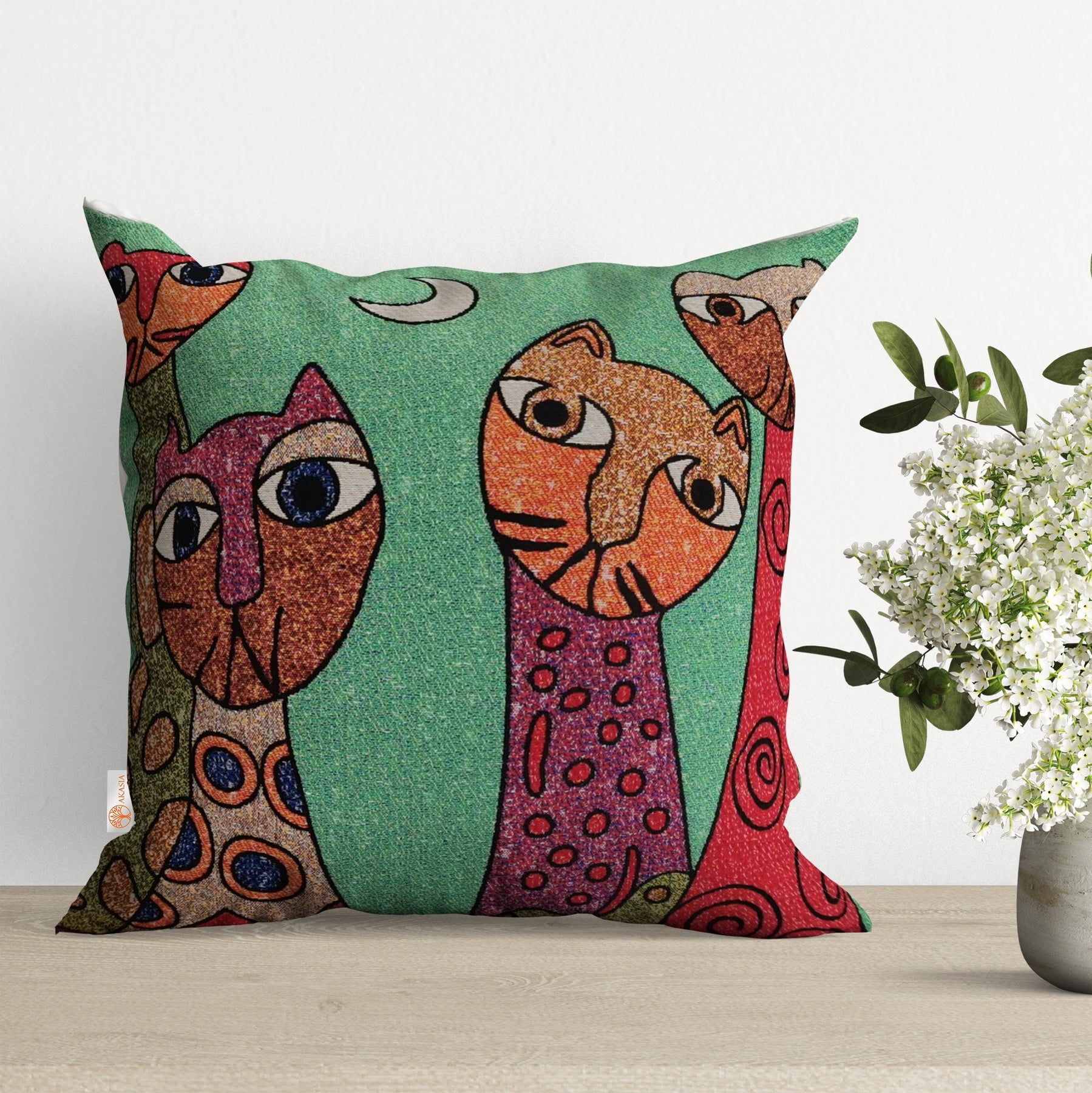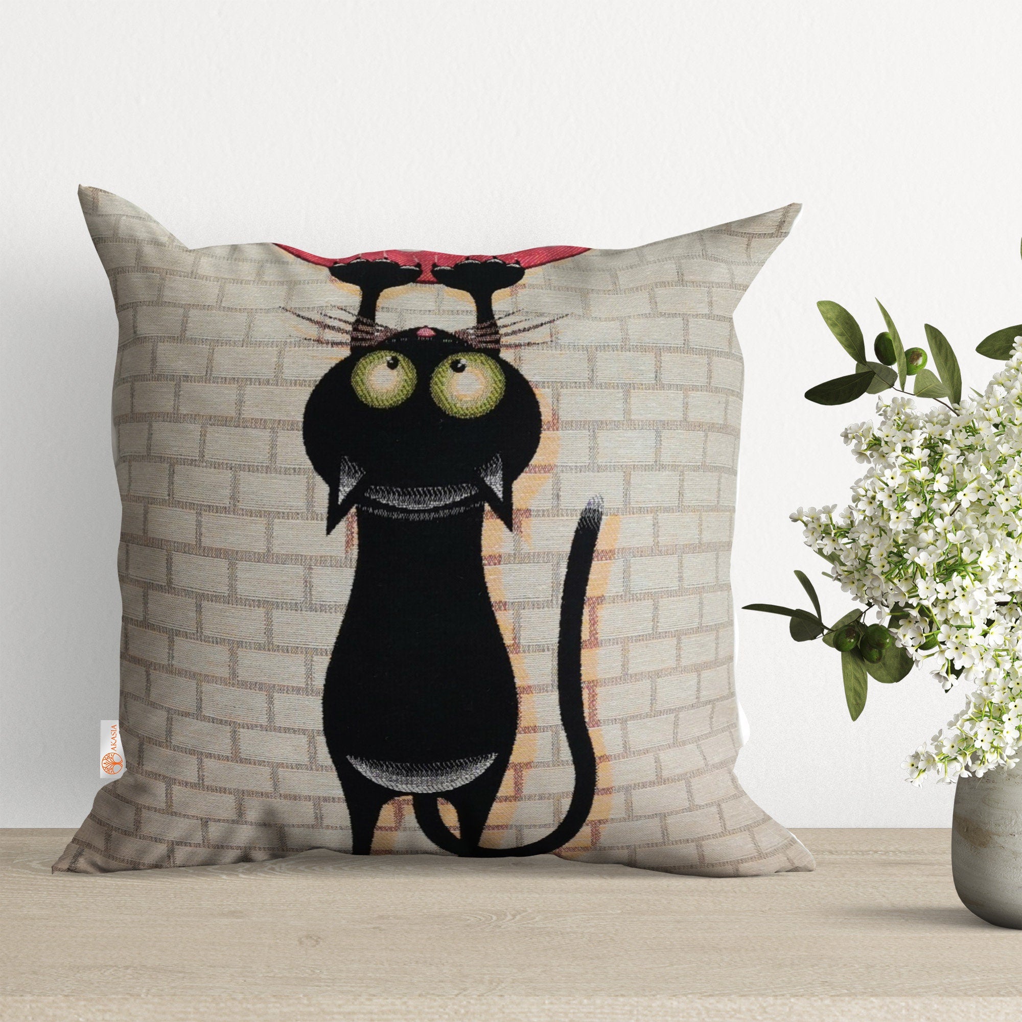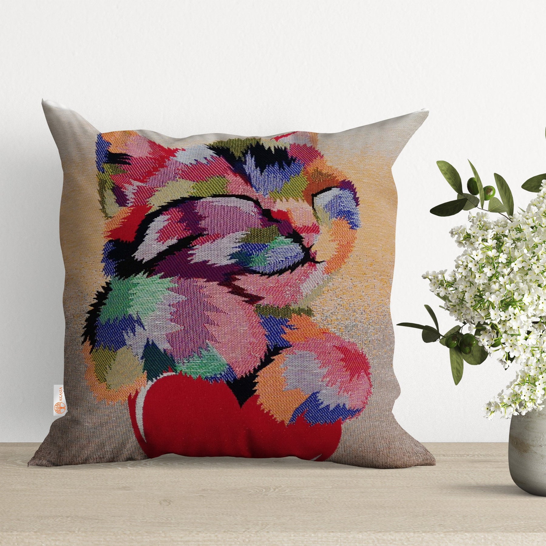 Cat and Dog Pillow Cover|Belgian Gobelin Tapestry Pillow|Authentic Throw Pillowcase|Woven Sofa Cushion|Colorful Cat and Dog Couch Pillowtop