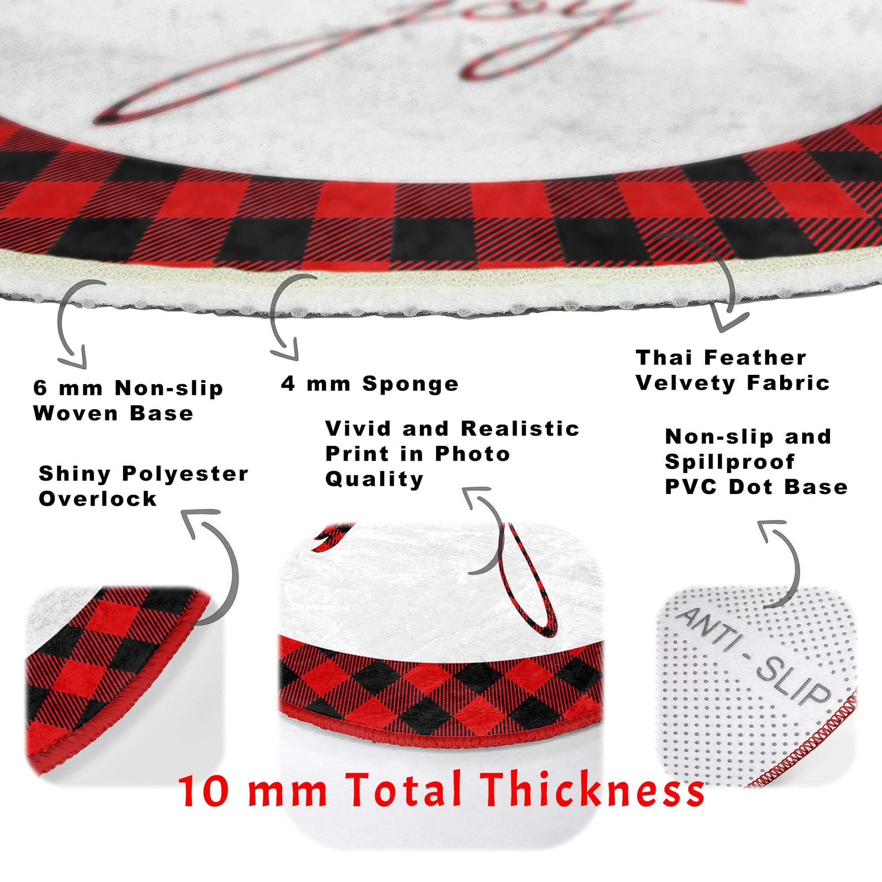 These elegant round floor rugs with Checkered background, Xmas Deer, Buckhorn and Joy/Believe prints;