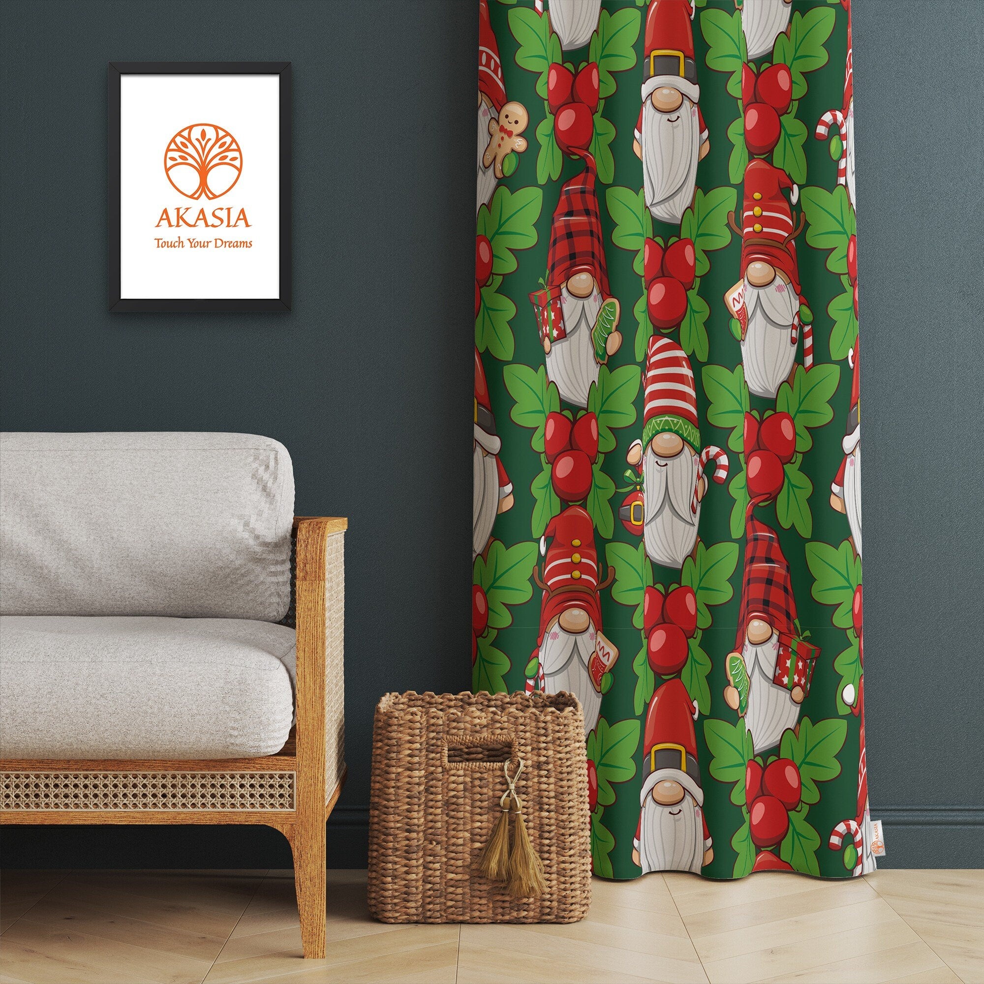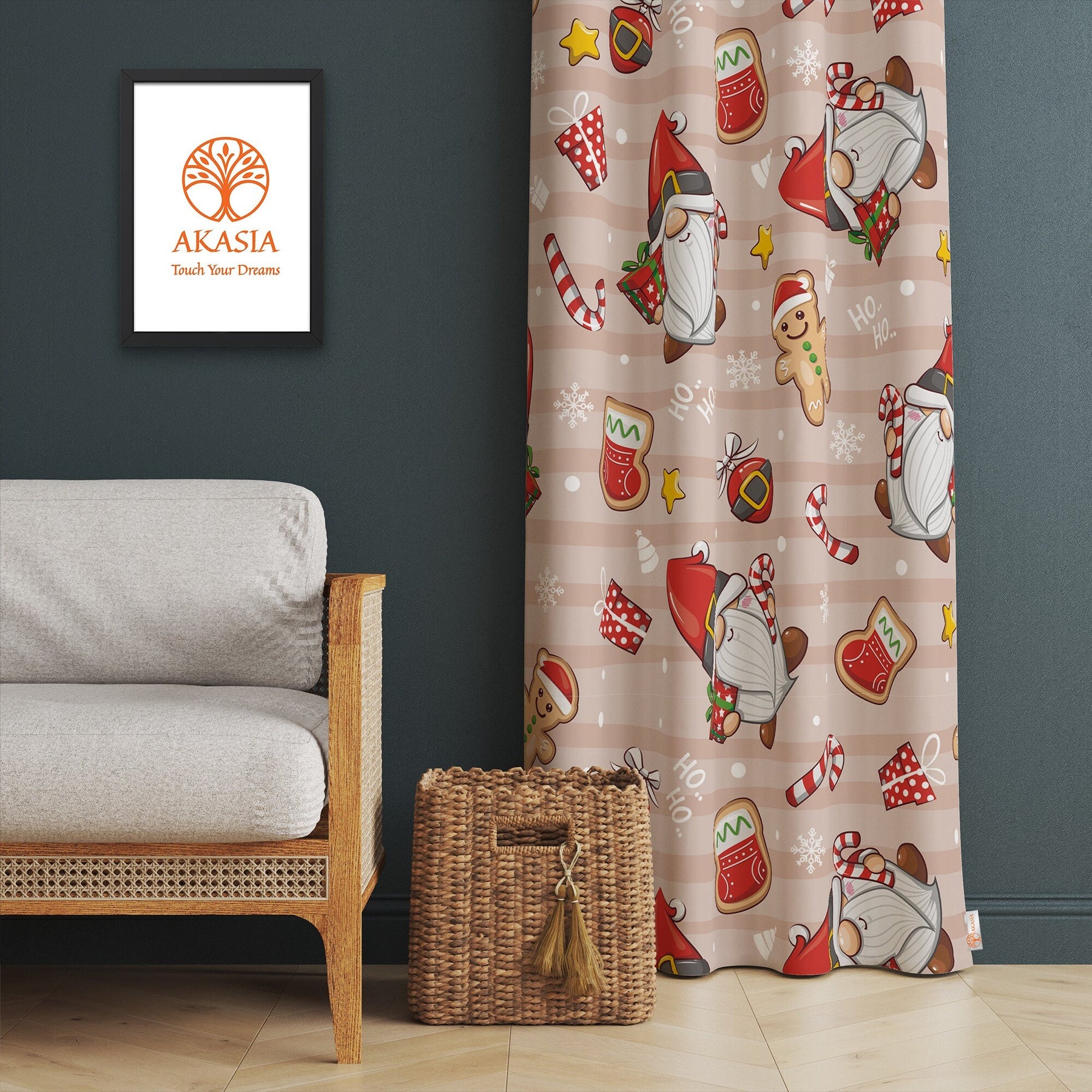 This high quality window curtain with Xmas Ho Ho, Gnome, Candy Cane print;