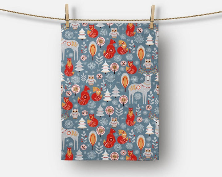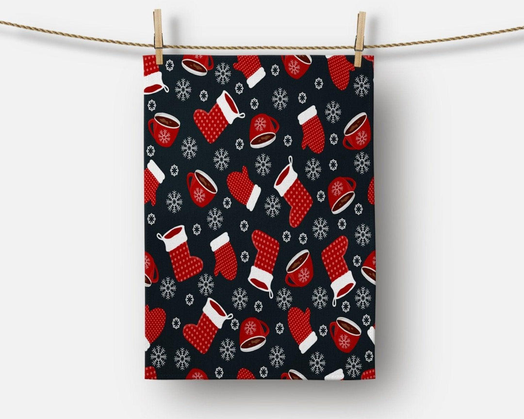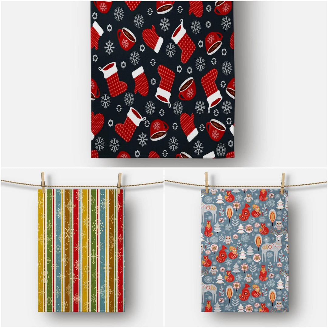 These elegant decorative rectangle kitchen/dish/hand/tea towels with Christmas Socks, striped snowflake prints, Xmas trees and winter animals;