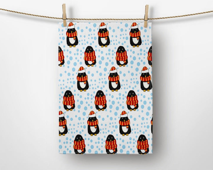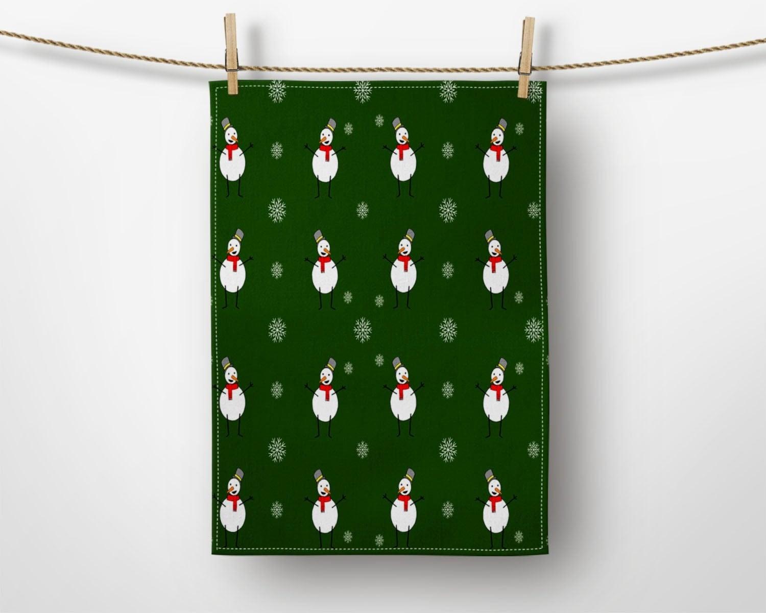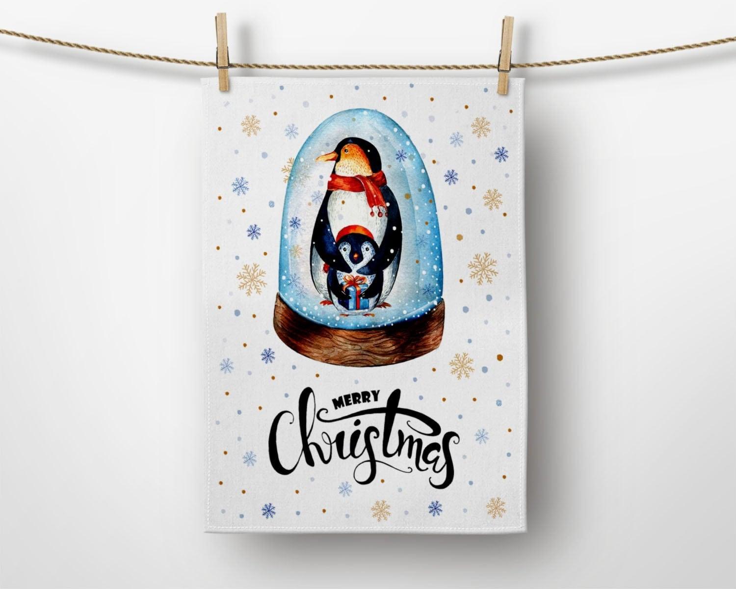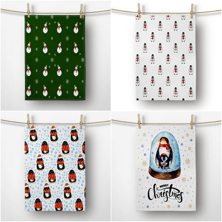 These elegant decorative rectangle kitchen/dish/hand/tea towels with penguin, snowman, snowflake and Merry Christmas print;